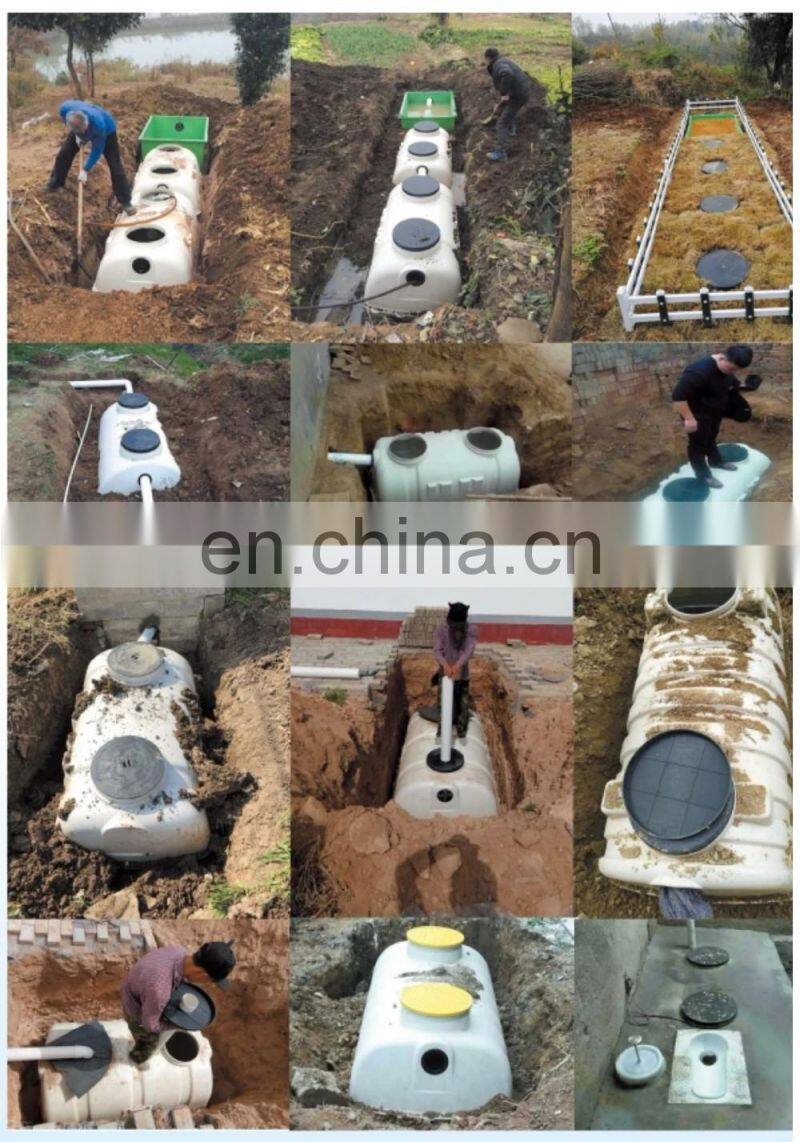 FRP/GRP septic tank is an ideal tank for toilet drain when there is no sewage system and construction chain. 0.5m 3 -2.5m 3 septic tanks are suitable for toilet drain and several houses, more bigger one will be used for residence community, supermarket and hotel etc.