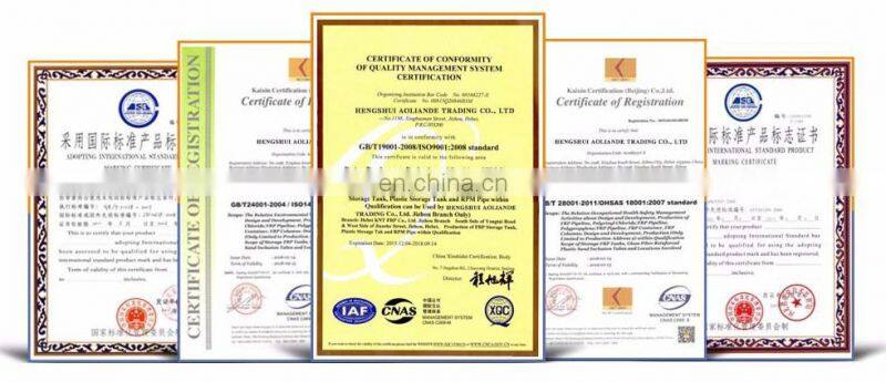 A: We are a company with trading company and factory together. Our trading company is named Hengshui Aoliande Trading Co., Ltd and factory named Hengshui Jiubo Composites Co., Ltd.