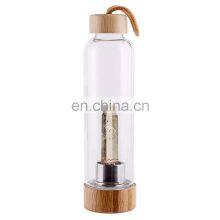Factory Food Grade 500ml Crystal Gemstone Healing Crystal Gem Glass Water Bottle With Bamboo Lid