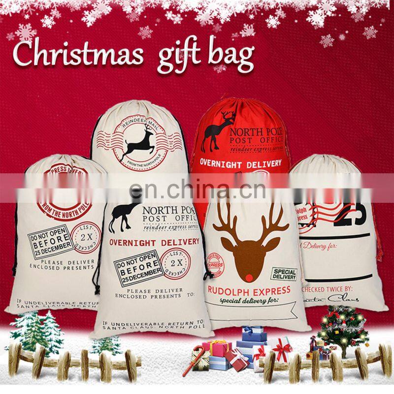 Eco Friendly Christmas Gift Canvas Cotton Bags For Christmas Tree Storage Candy Bag OEM Customized With Drawstring