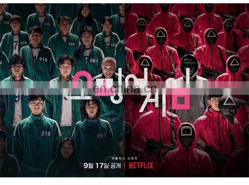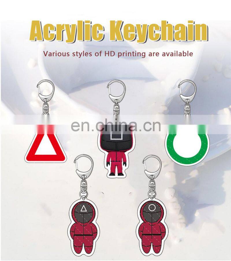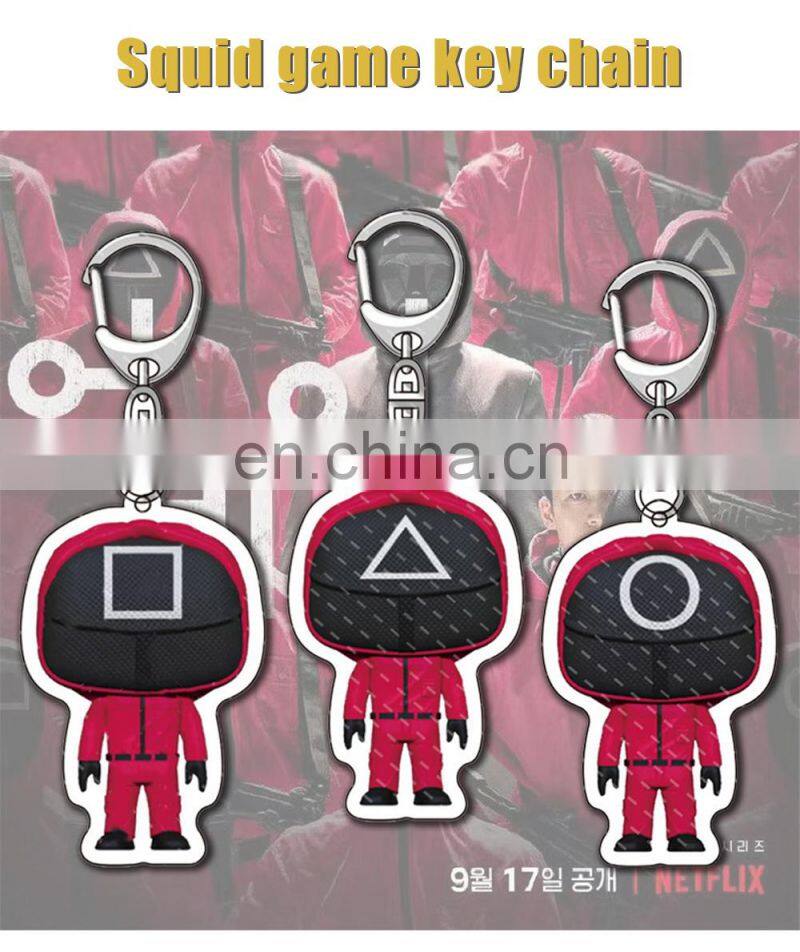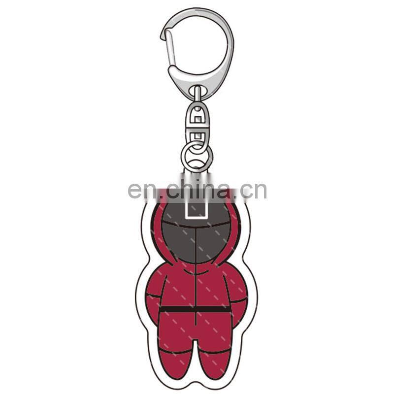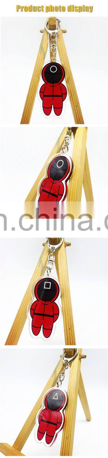 Squid Game Key Chain Mini Doll Key Chains Clear Acrylic Cosplay Red Man Halloween Keyring Soldier Squid Game Keychain