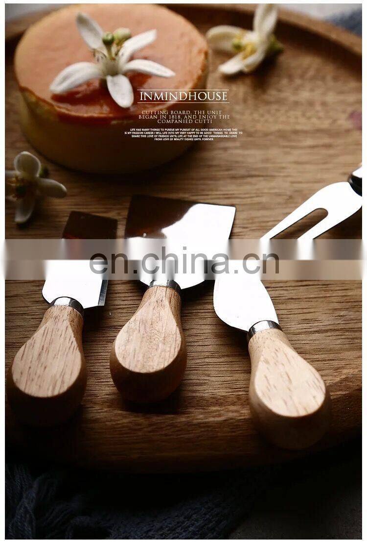 Personalised Custom Logo Stainless Steel Acacia Wooden Handle 4 Pcs Cheese Knife Set