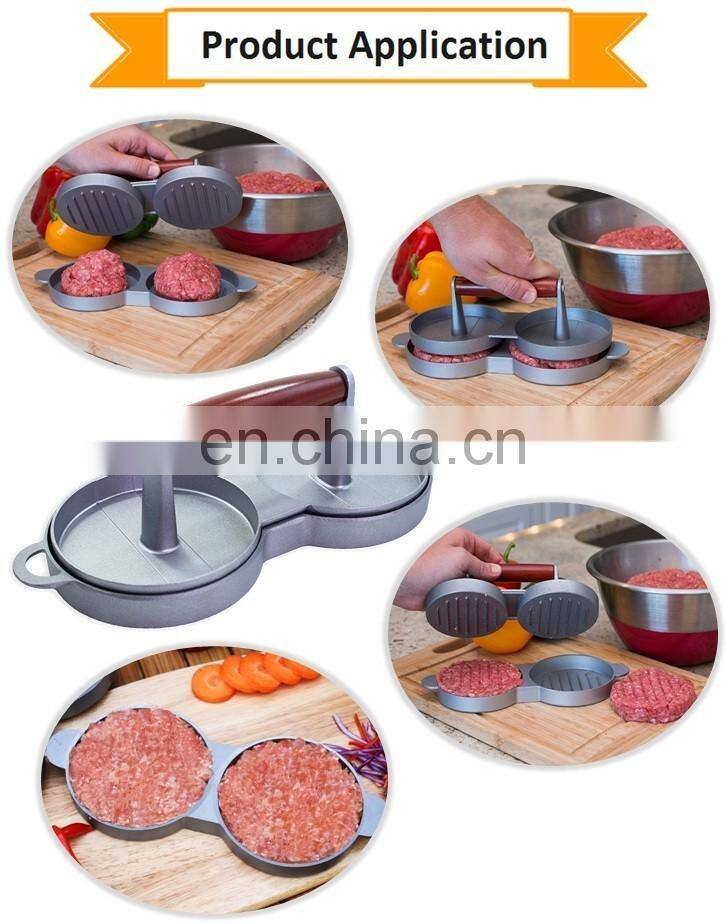 - Best Quality Wooden Handle Non-stick Aluminum Burger Press With Handle