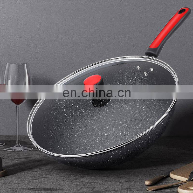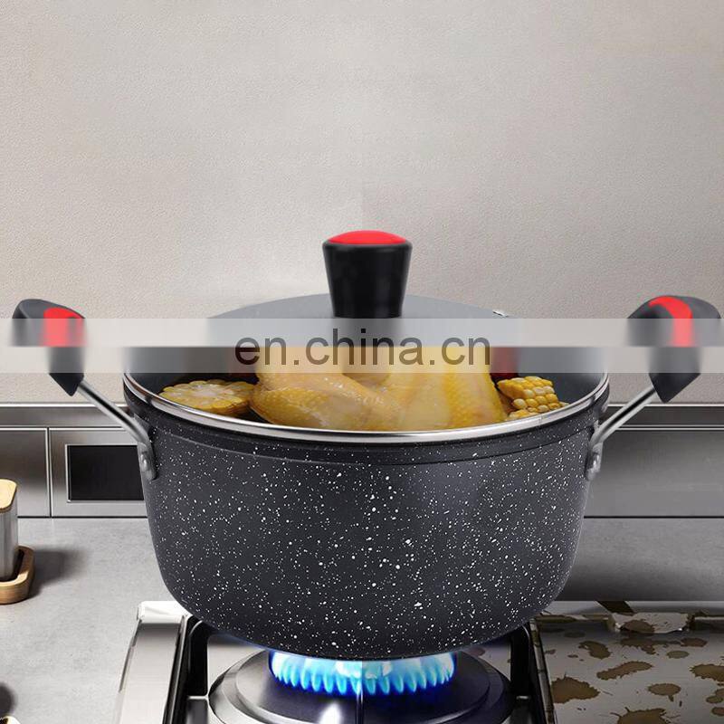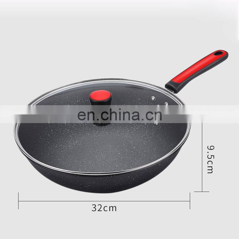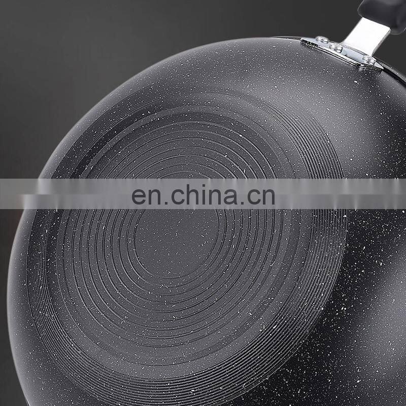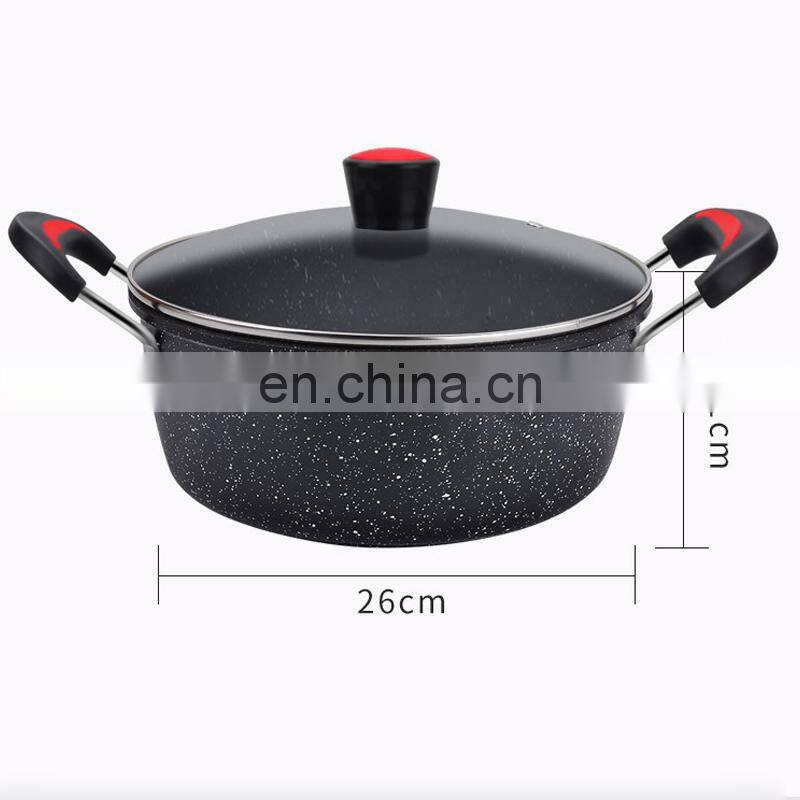 2021 New Pressing Popular Kitchen Cookware Soup Glass Cover Wood Pattern Cheap Marble Non Stick Sauce Pan