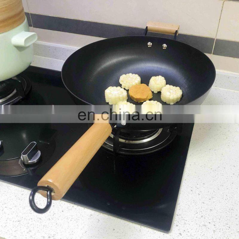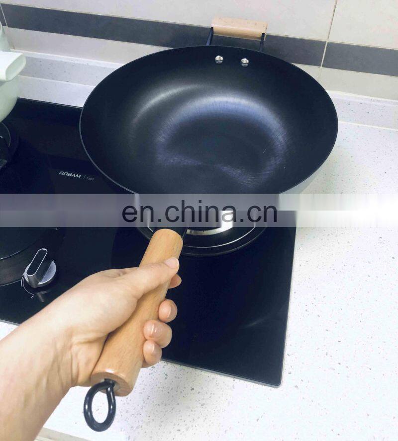 2.Wok features a sturdy maple handle for easy, safe stirring and flipping and a flat bottom for even results on a variety of cooking surfaces