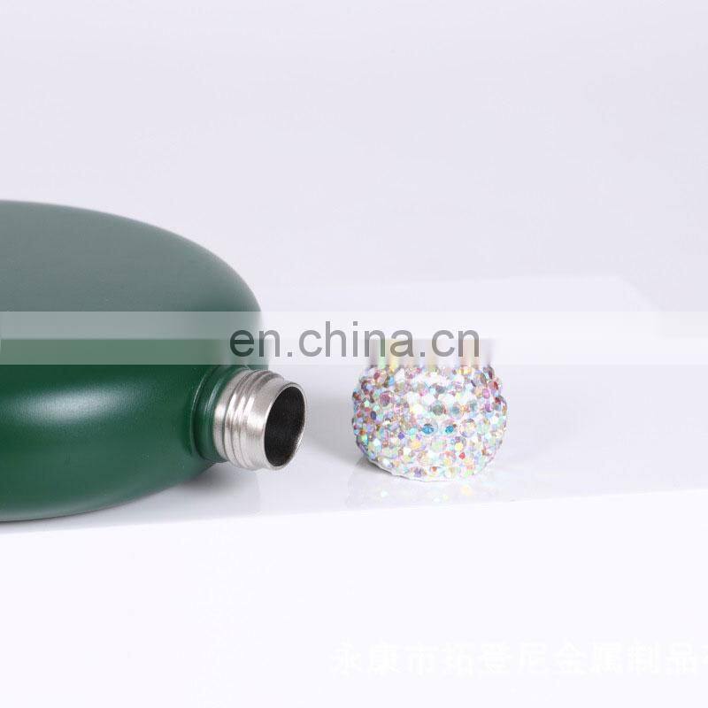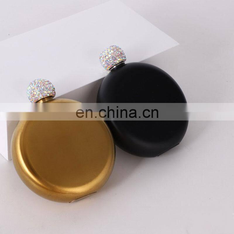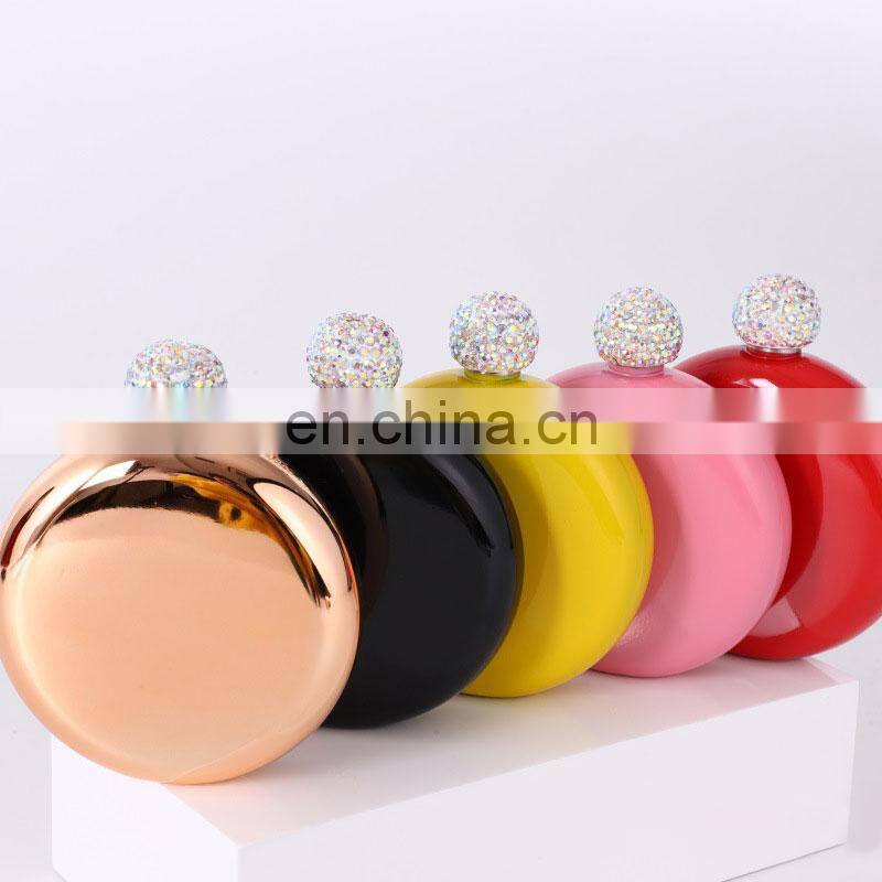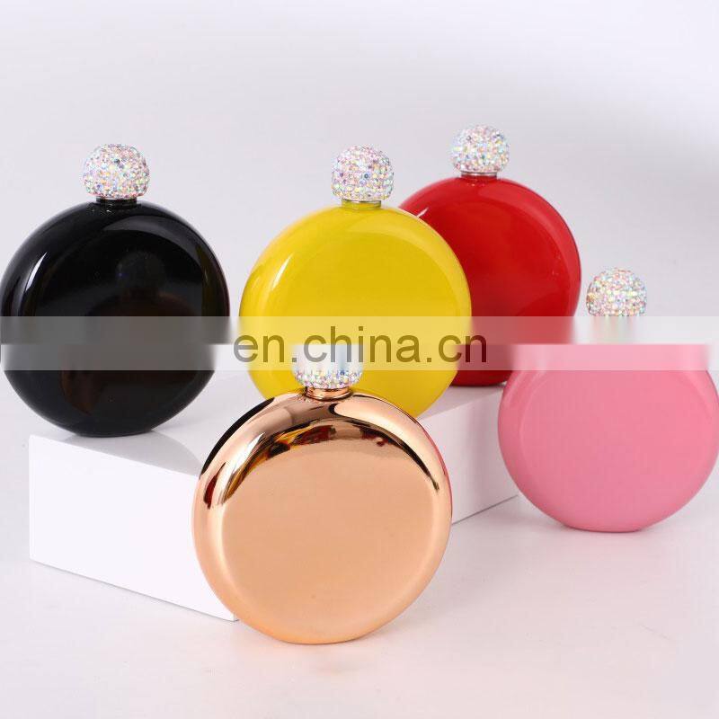 Women Men Yellow Diamond Gold Lighter Pink Black Perfume Bottle Round Whiskey Hip Flask