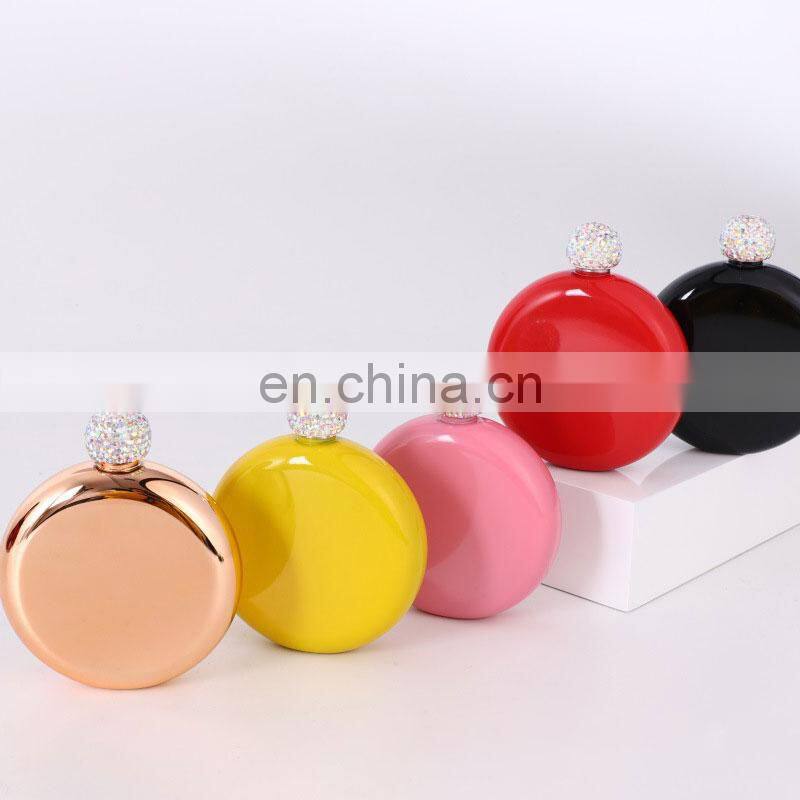 Home > Products > Barware > Women Men Yellow Diamond Gold Lighter Pink Black Perfume Bottle Round Whiskey Hip Flask