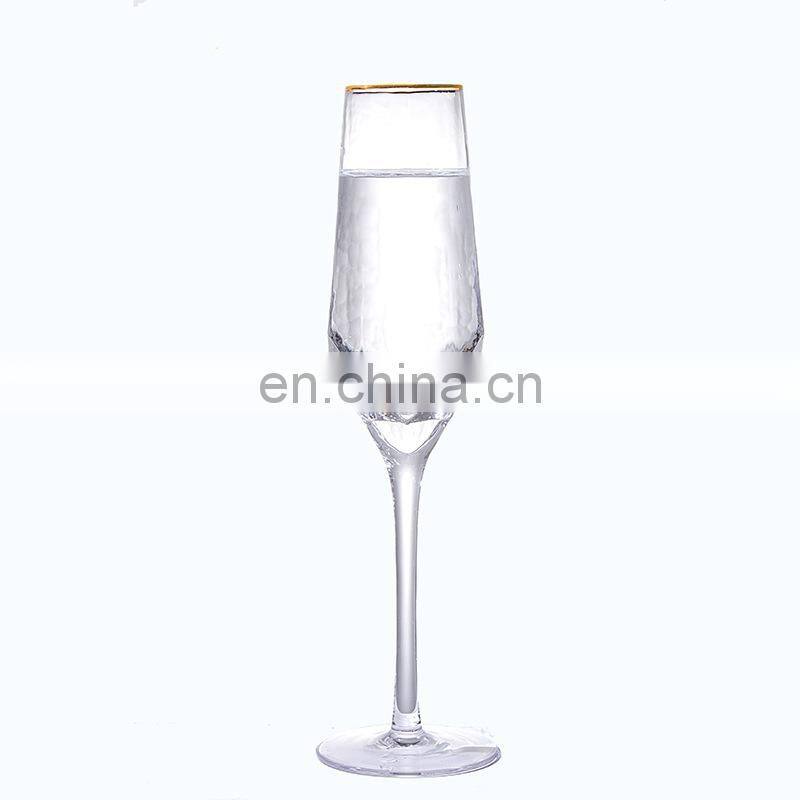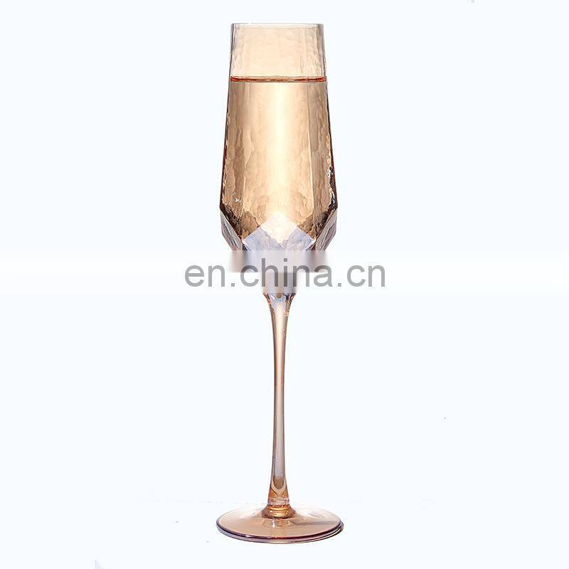 Classic Birthday Gift Custom Logo Champagne Transparent Color Diamond Elegant Golden Wine Glass