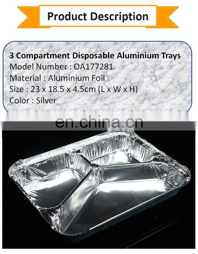Home > Products > Tableware > 3 Compartment Disposable Aluminium Trays, Reusable Deep Kitchen Containers for Baking