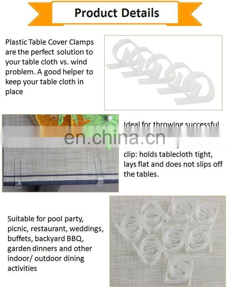 Product Type | Cheap Transparent Plastic ABS Tablecloth Covers Clips Clamps for Decorating |