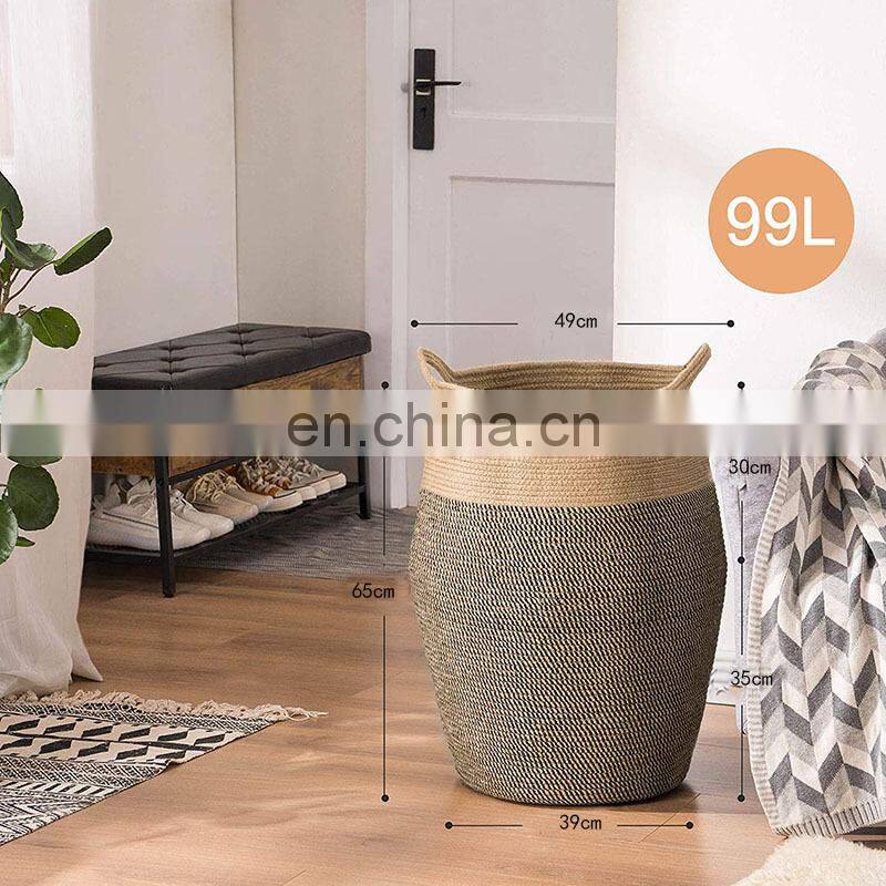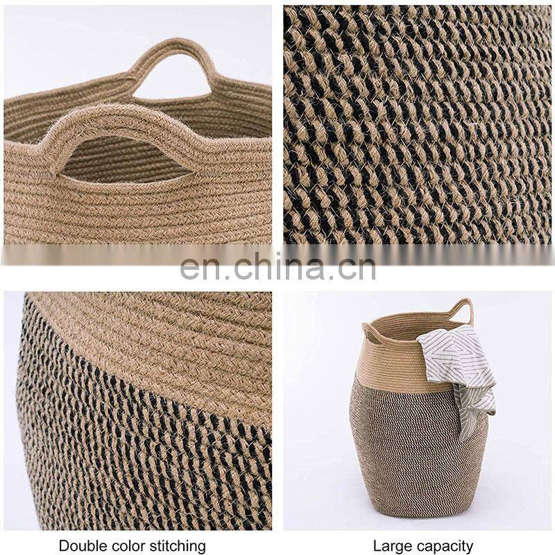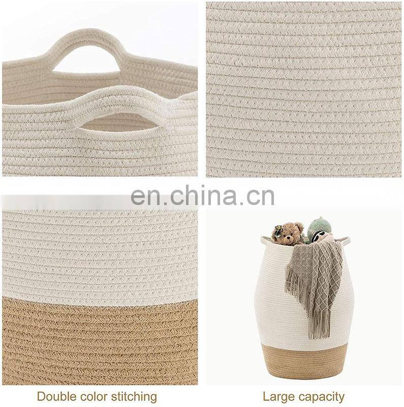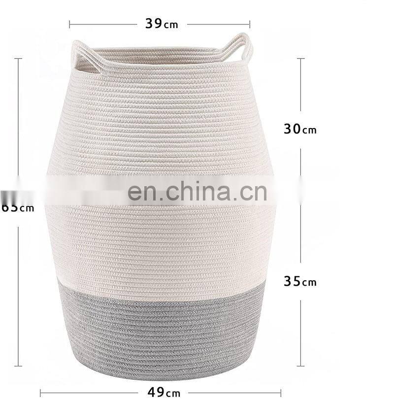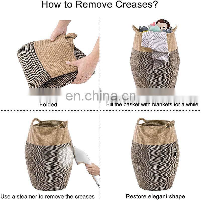 2021 New Arrival Rope Handle Organizers Cotton Woven Large Storage Basket Foldable