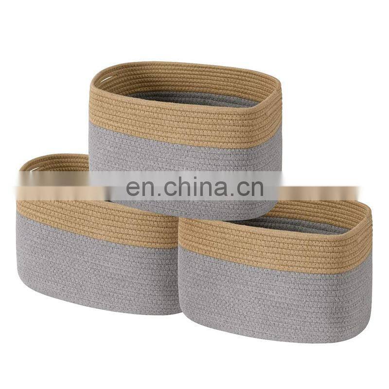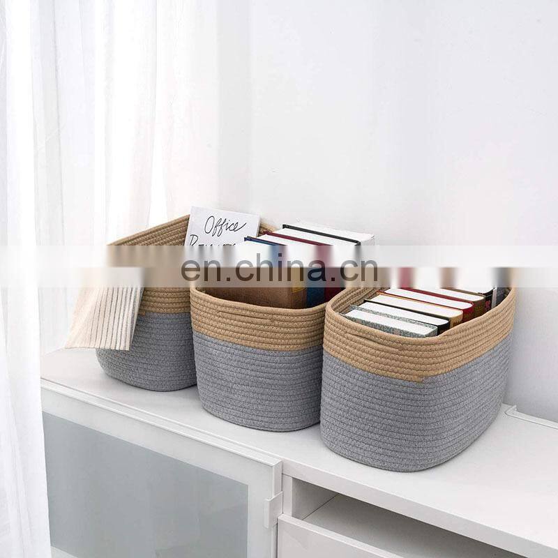 2021 New Arrival Rope Handle Organizers Cotton Woven Large Storage Basket Foldable