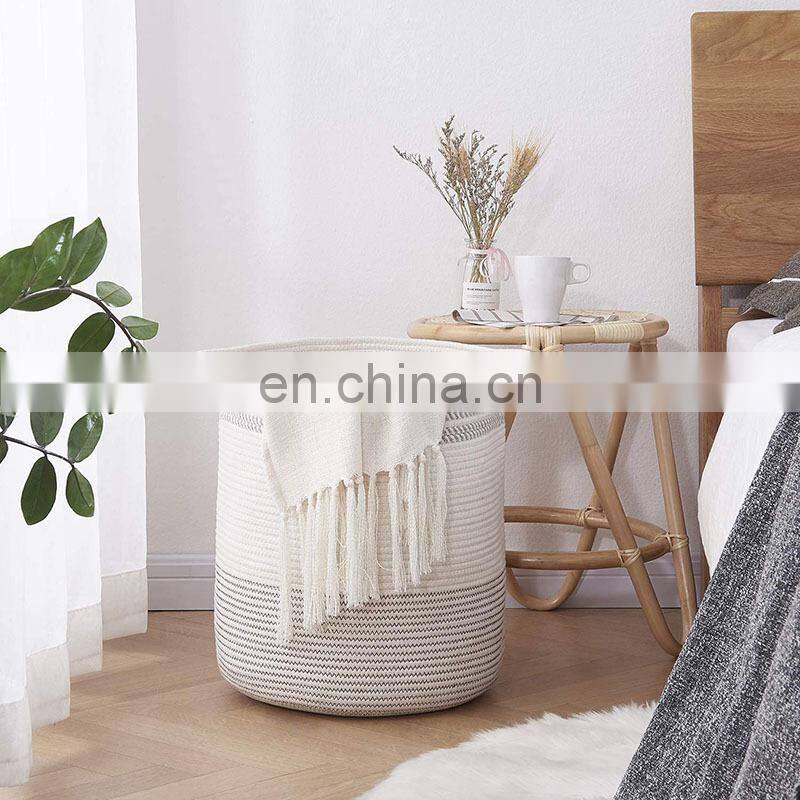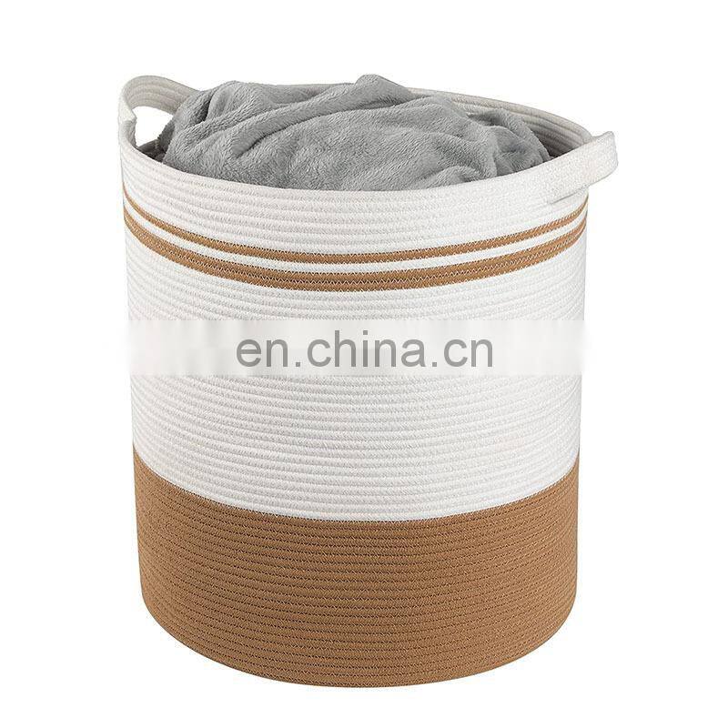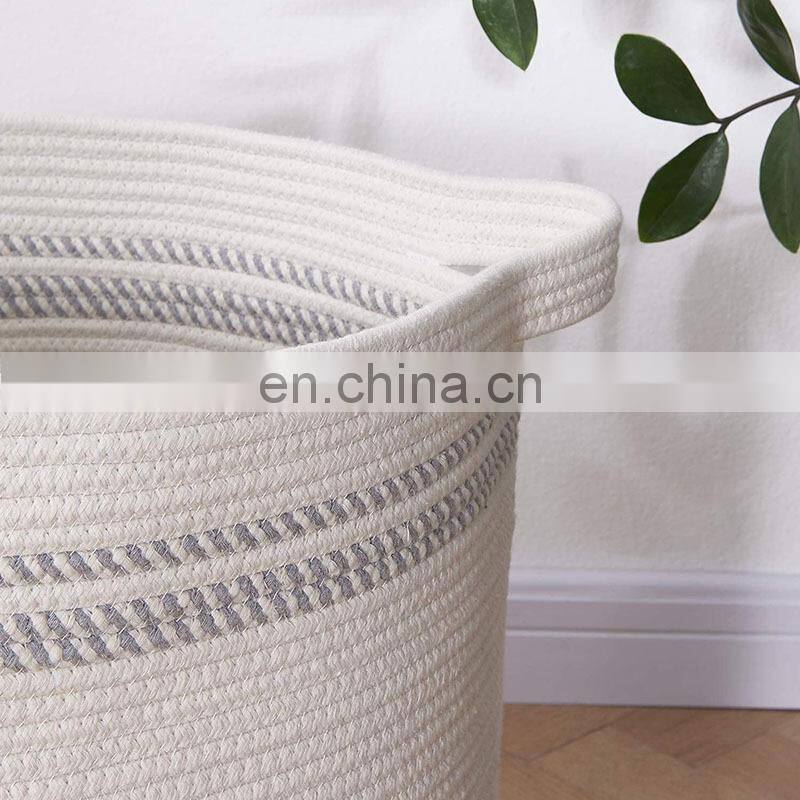 2021 New Arrival Rope Handle Organizers Cotton Woven Large Storage Basket Foldable