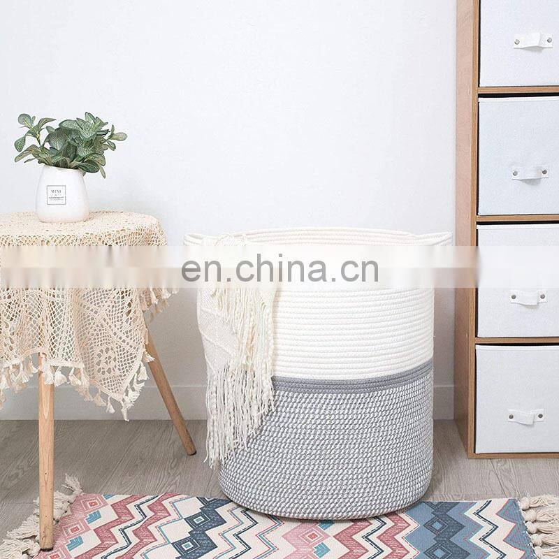 New Wholesale 2021 Handle Logo Luxury Cotton Rope White Laundry Basket Storage Bag