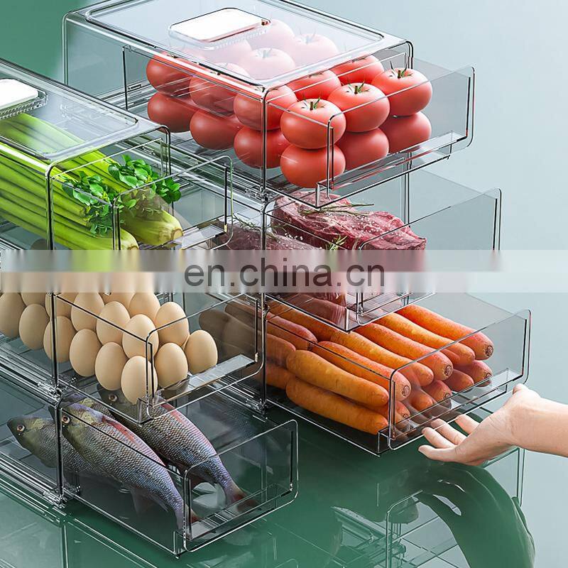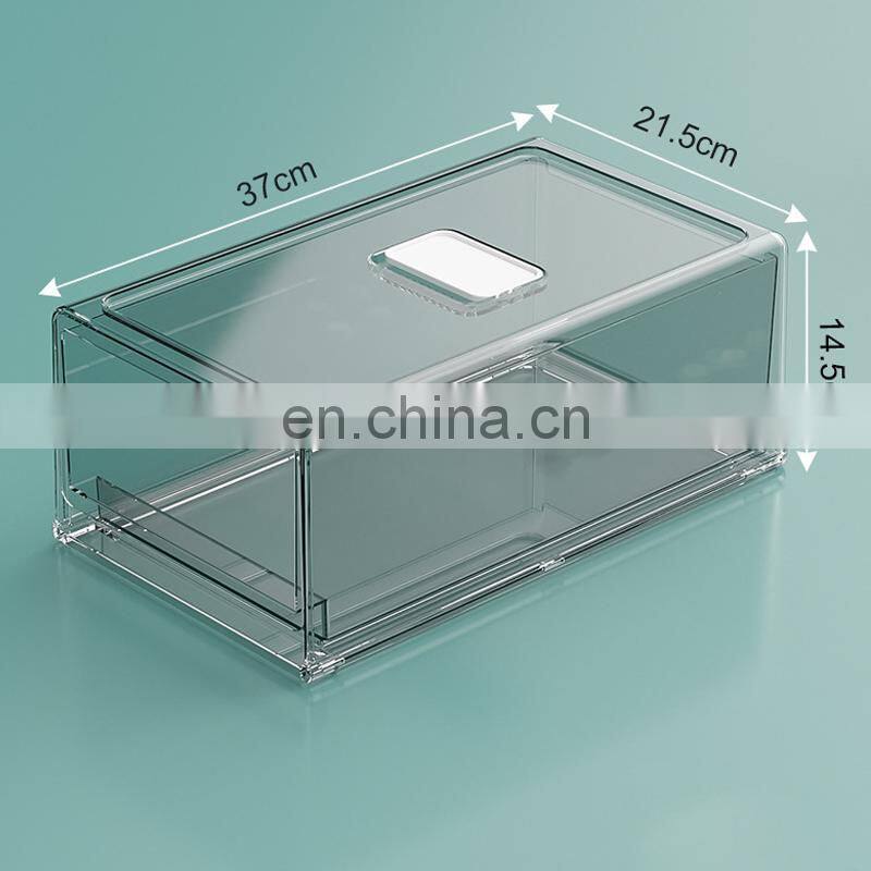 Hot Sale Stackable Box Organizing Pantry Plastic Transparent Display Rack Storage Bin Container