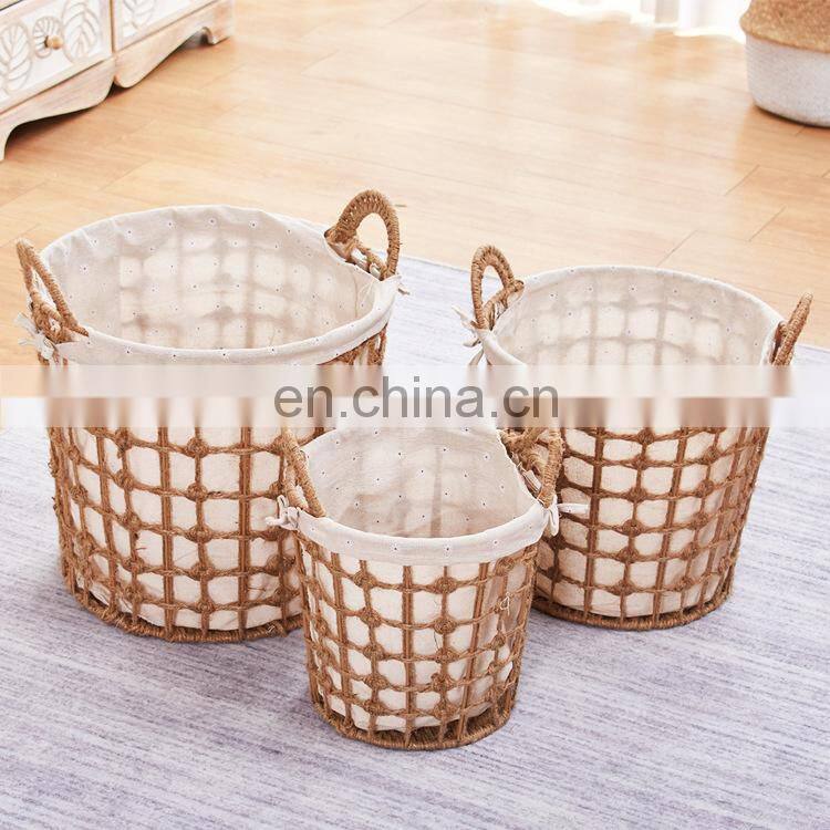 PE Weaving Luxury Modern Fabric Storage Thicken Felt Round Large Self Pick Up Blanket Laundry Basket
