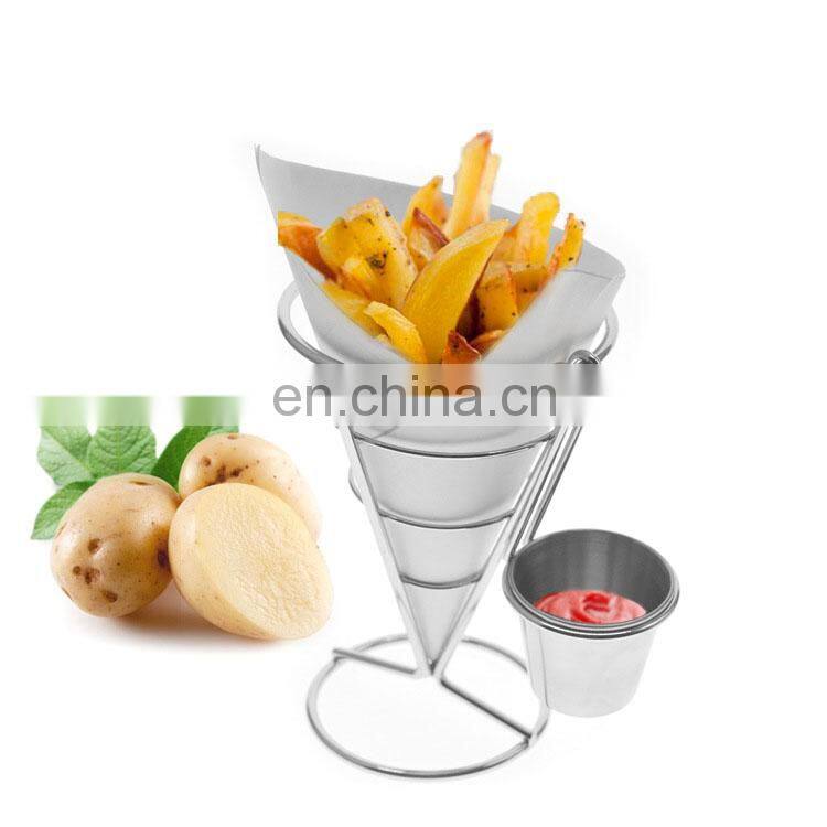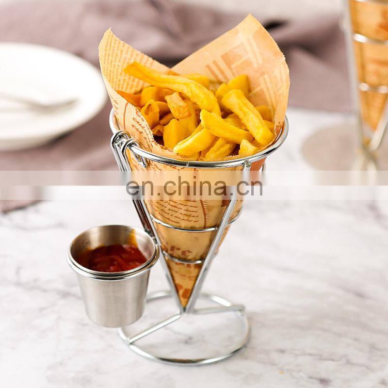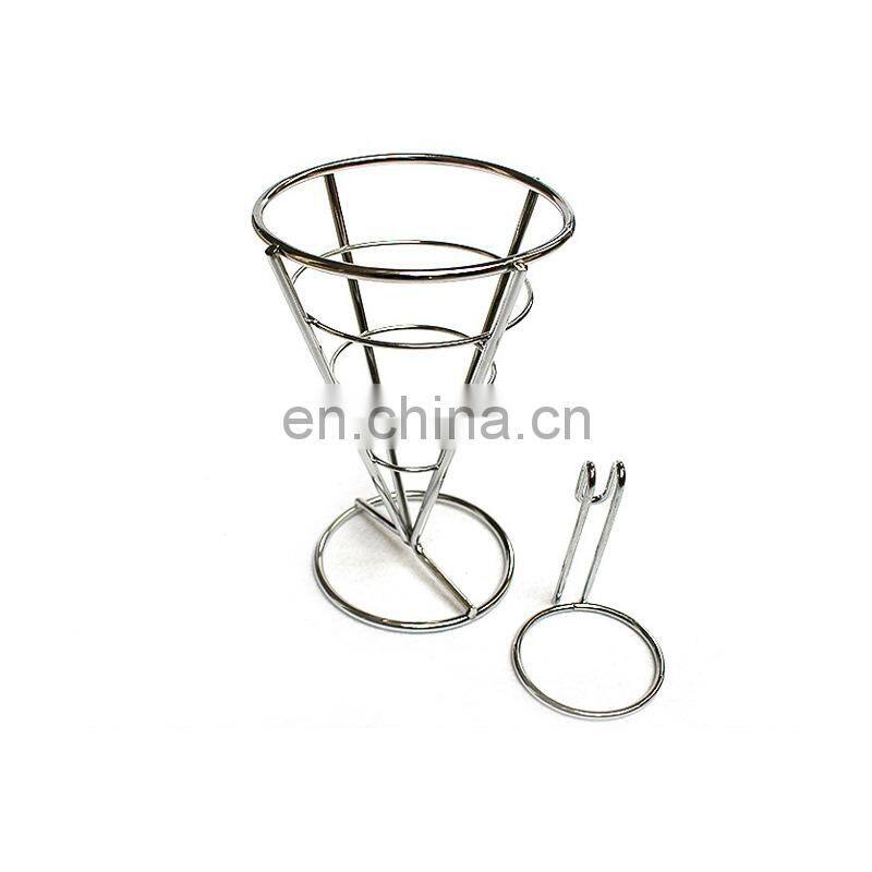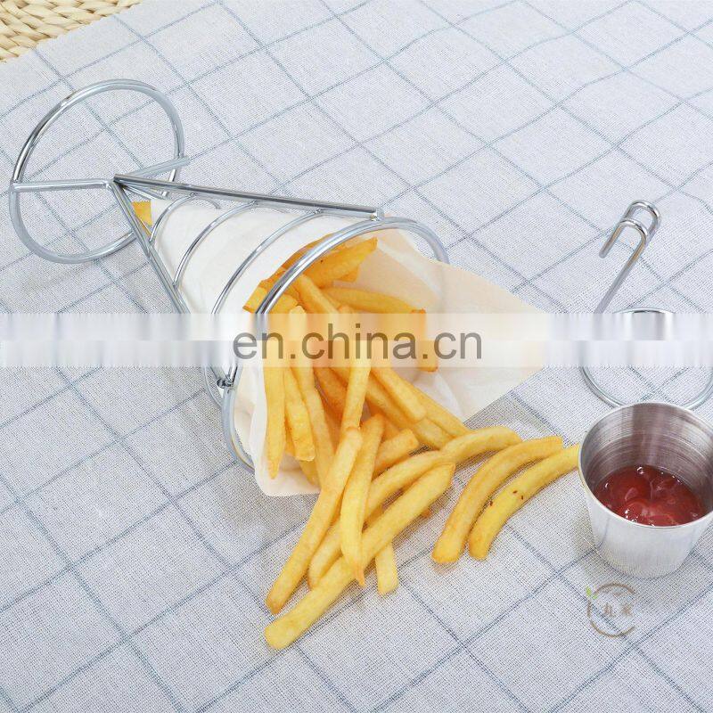 French Fry Stand French Fry Chips Metal Spiral Cone Basket Holder for Fries Fish and Chips and Sauce Dippers