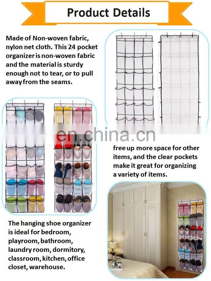 3.The hanging shoe organizer is ideal for bedroom, playroom, bathroom, laundry room, dormitory, classroom, kitchen, office closet, warehouse.