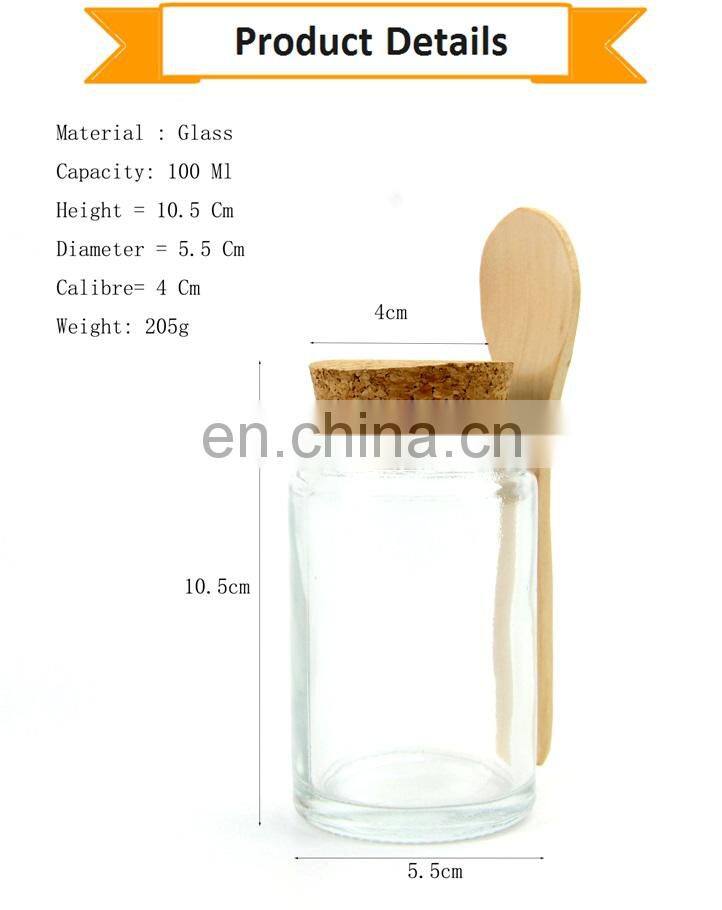 Wholesale Clear Transparent Glass Jar And Containers With Wood Spoon And Cork Glass Jar