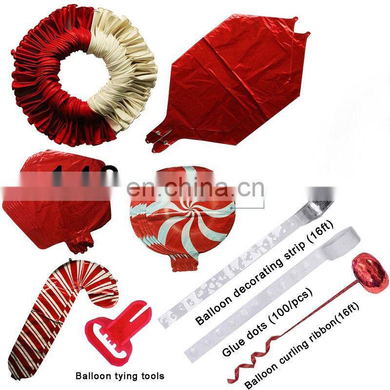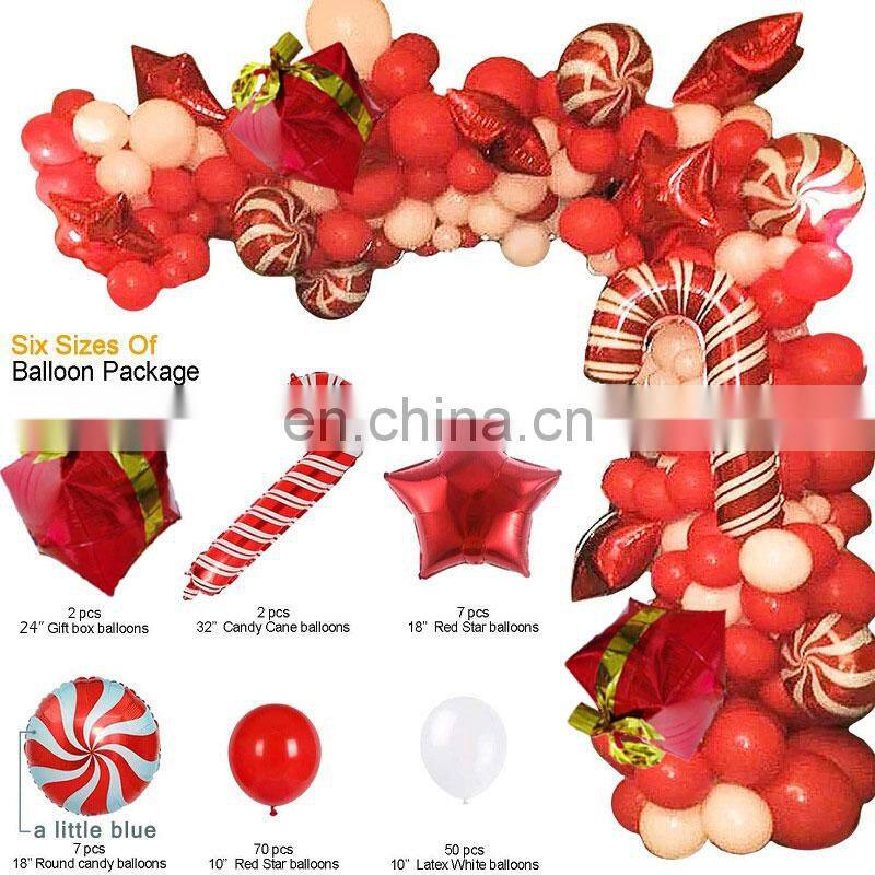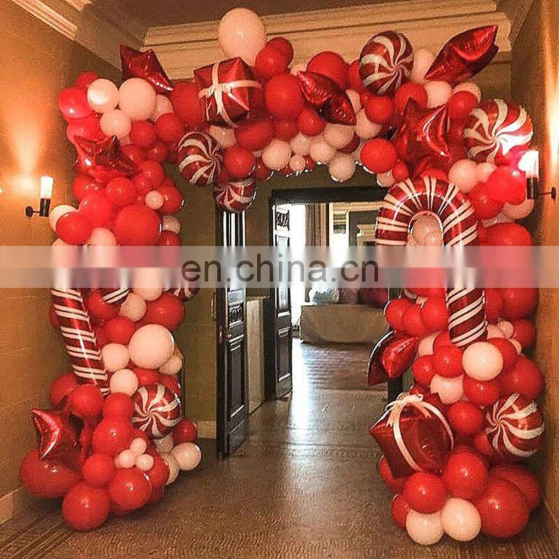 3. HELIUM CANDY FOIL BALLOONS : Candy balloons included are helium and air supported balloons, they add a nice touch to the Christmas latex red and white balloons, add them in the Christmas balloon garland.