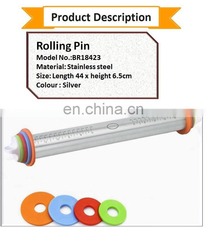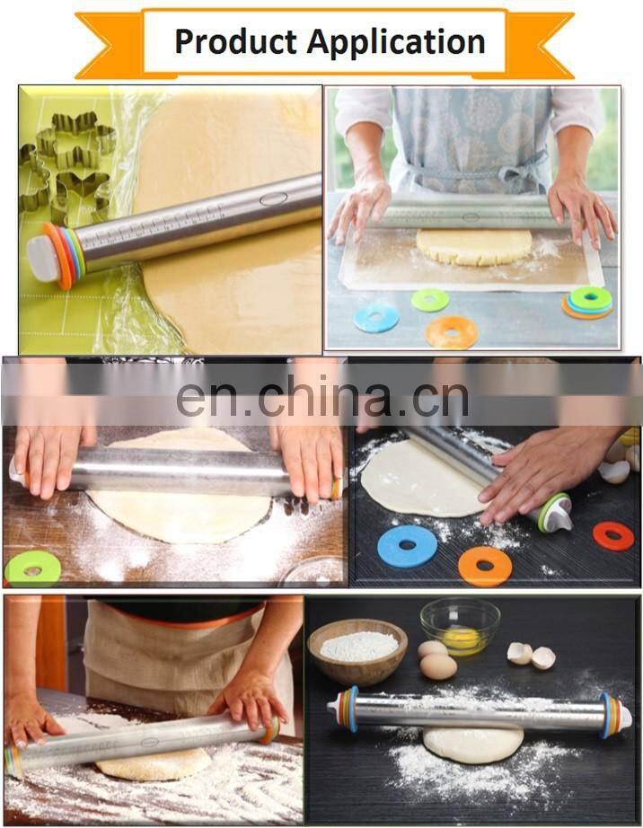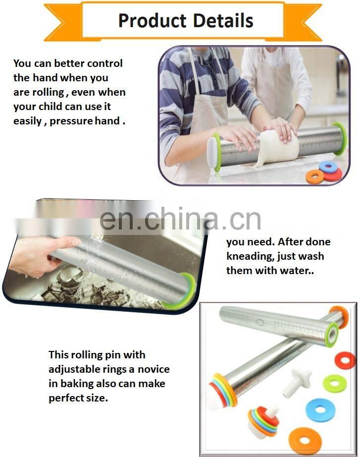 Home > Products > Bakeware > Hot Selling Stainless Steel Roller Dough Rolling Pin, Removable Adjustable Thickness Rings