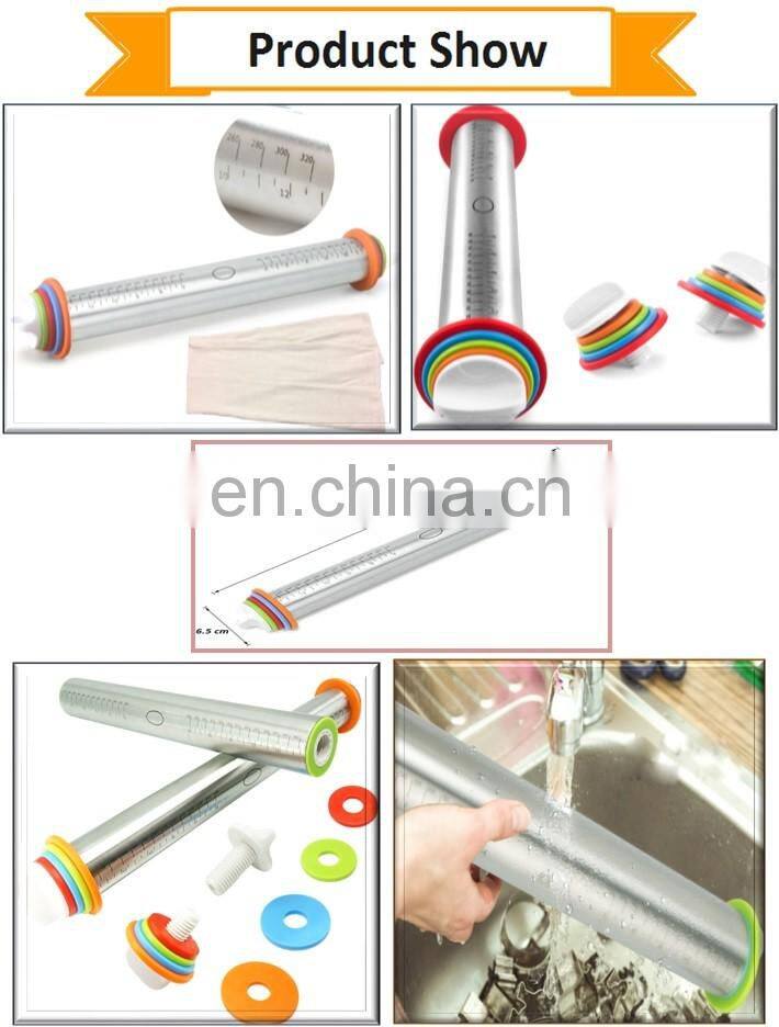 Hot Selling Stainless Steel Roller Dough Rolling Pin, Removable Adjustable Thickness Rings