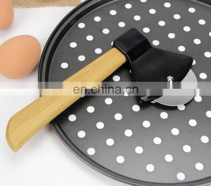 Home > Products > Bakeware > Stainless Steel Pizza Cutter With Wooden Handle Pastry Pasta Dough Baking Tool Home Kitchen Accessories Pizza Cutter