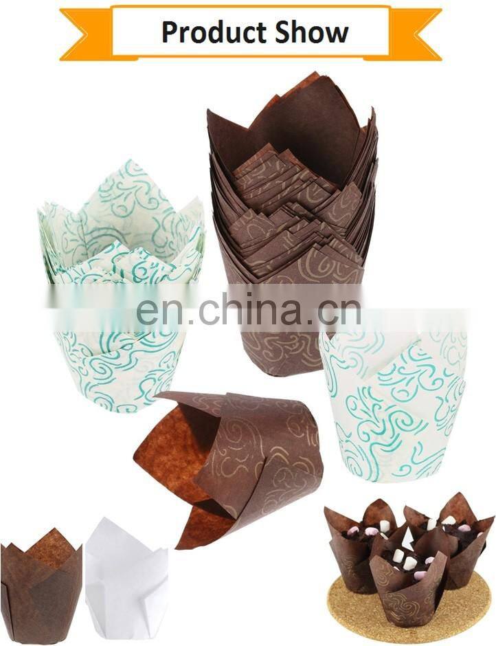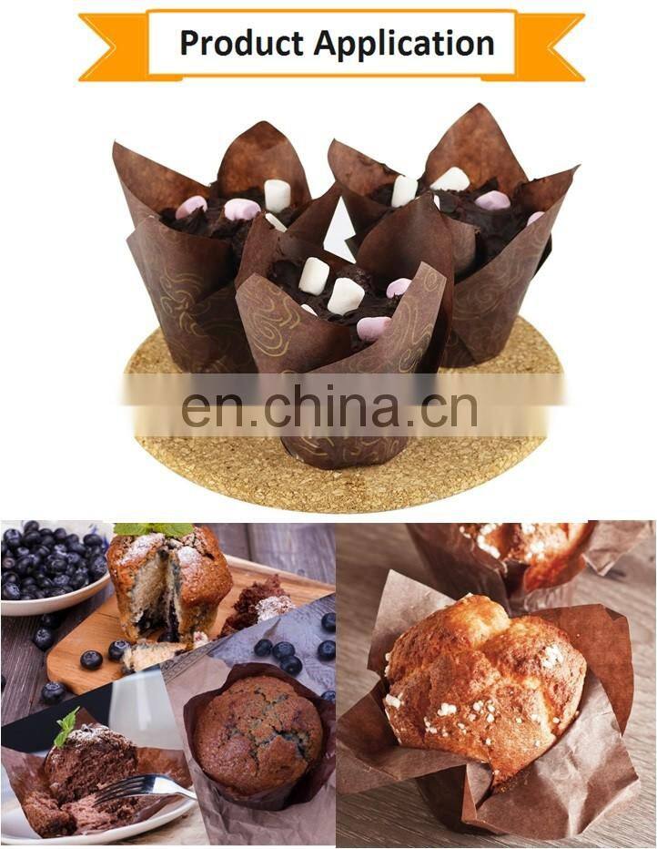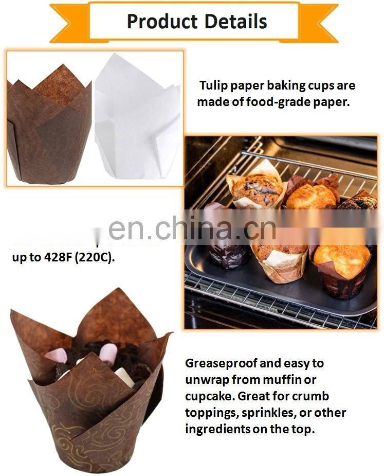 1. These beautiful brown with Gold pattern tulip liners provide an attractive professional artisan look for your muffins or cupcakes.