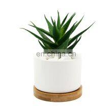 Decorative White Ceramic Plant Pot With Wooden Tray