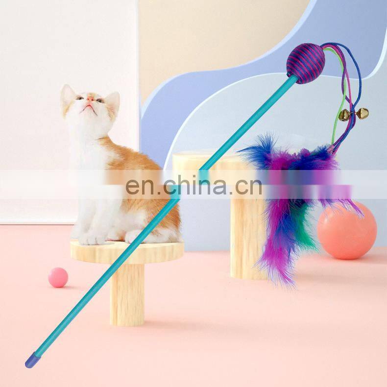 Favourable Price New Arrival Pet Toy Interactive Plastic Pole Pet Pink Feather Cat Teaser