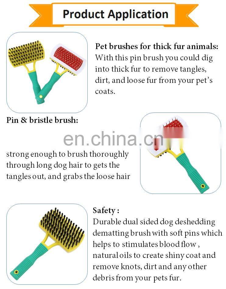 ALL-IN-ONE GROOM BRUSH: With one side featuring pins & the other soft bristles, this is the quintessential pet brush for dogs, cats & other furry animals.
