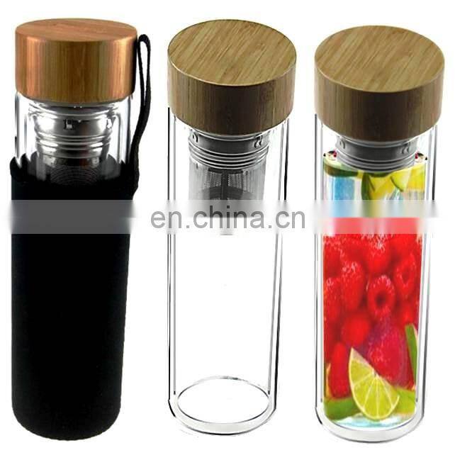 Double Wall Glass Tea Infuser Water Bottle with Bamboo Cap