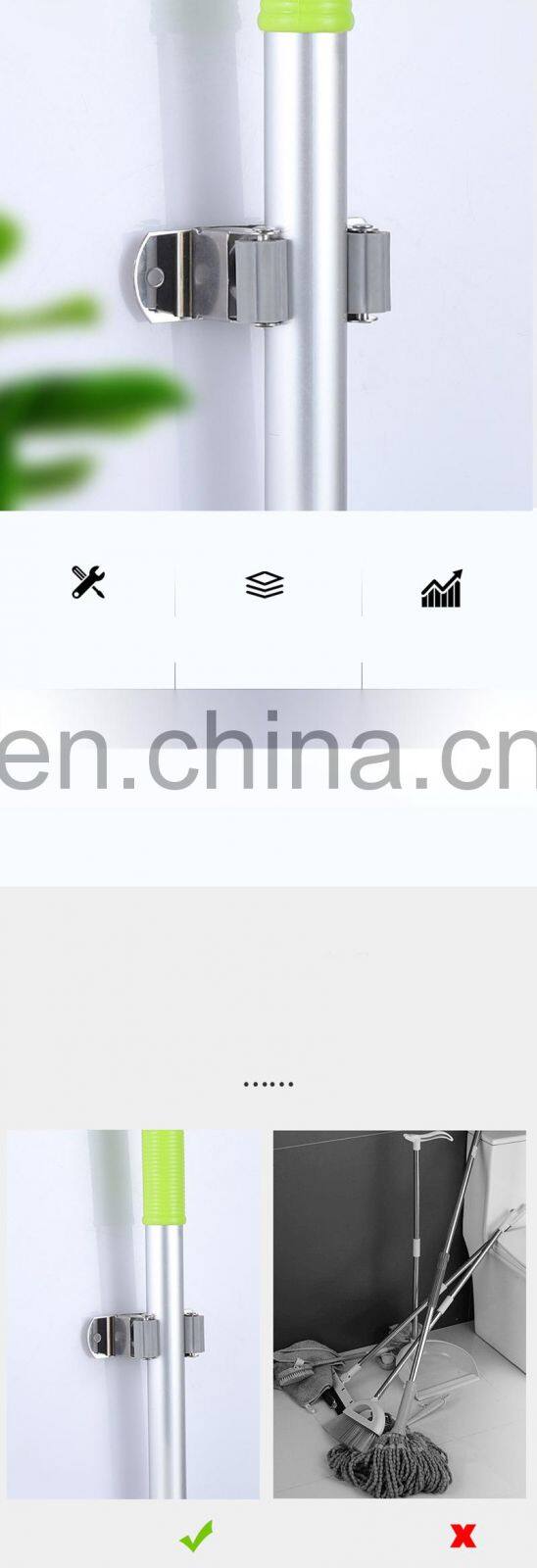 Aluminium Plastic Head Organizer Cleaning Adhesive Mounted Single Wall Mop Broom Holder