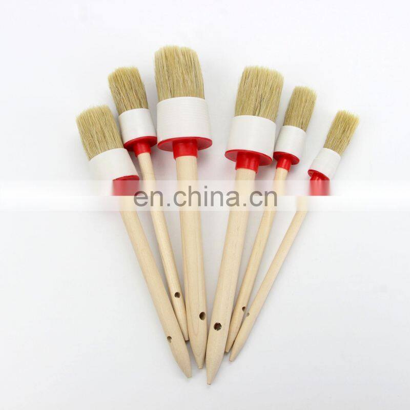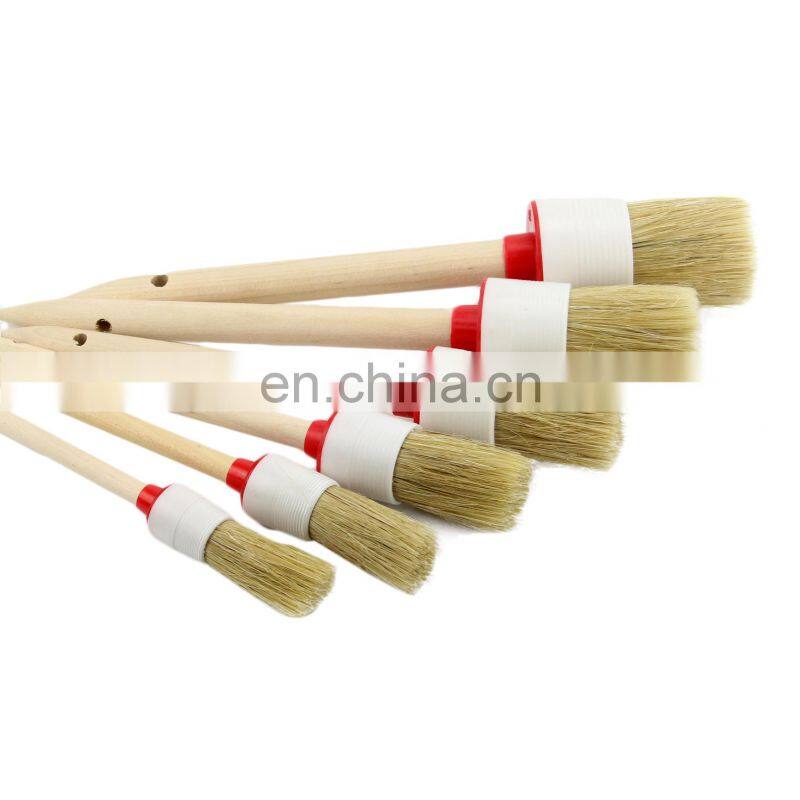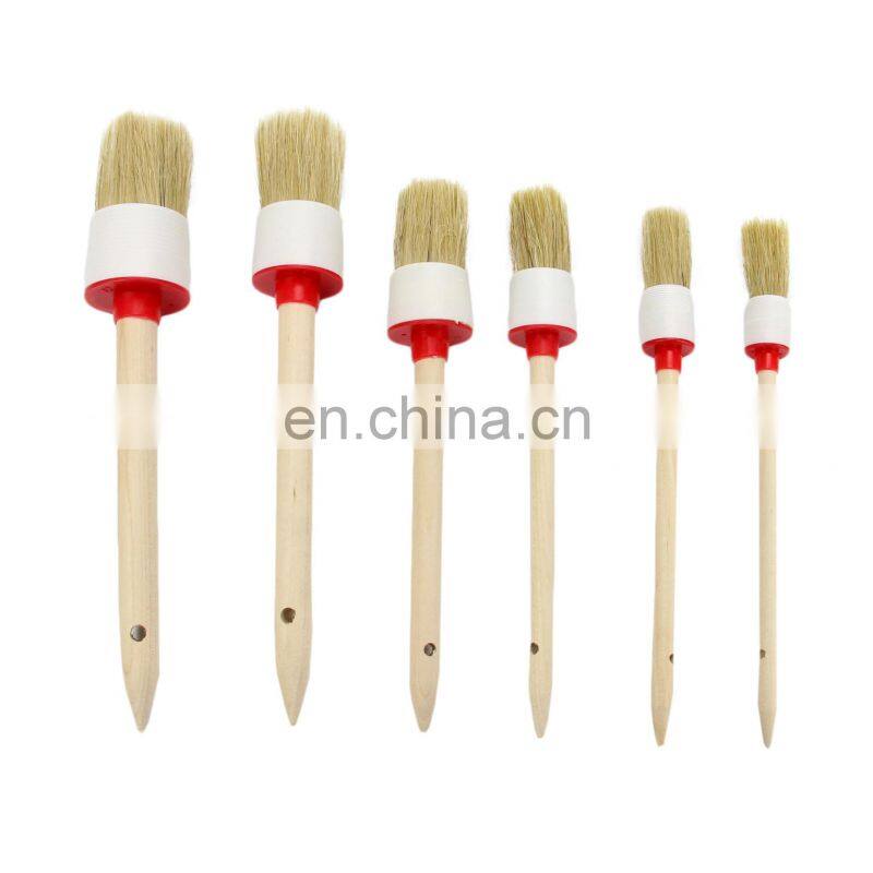 Natural Boar Hair Detail Brush (Set of 6), Auto Detailing Brush Set Car Detailing Brushes Perfect for Cleaning Wheels, Dashboard