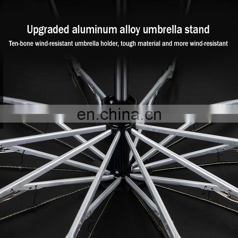 2. The double layer inverted umbrella made of: cloth, durable black electric ribs and double layer ribs make umbrella more sturdy, enhance its windproof effect. Unique design of double inverted umbrella,inside-out design prevents water from dripping, keeping floors and cars dry.