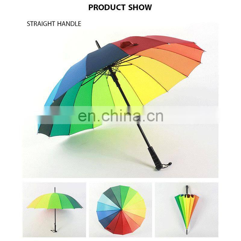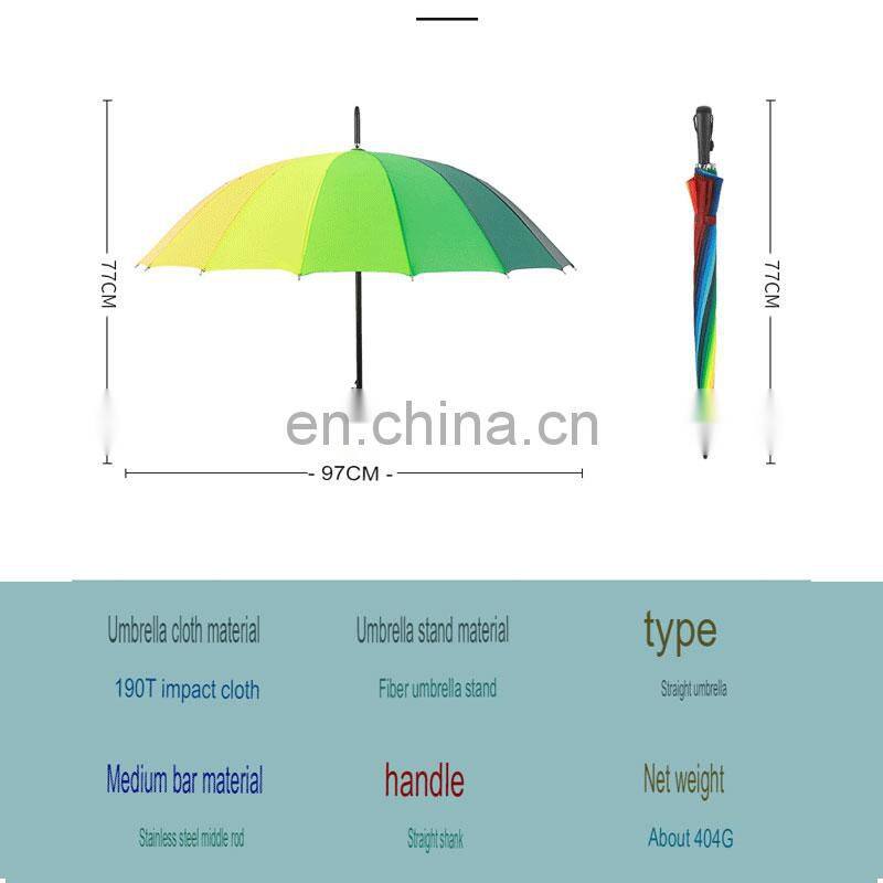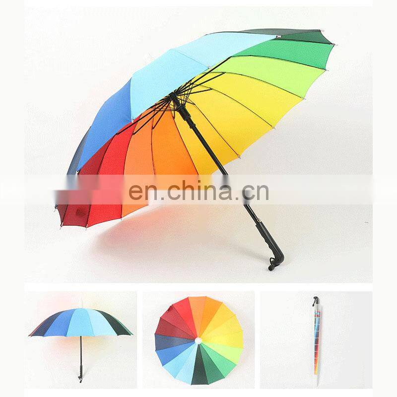 2. Full-size travel umbrella. Color - The color of this Rainbow umbrella is Multi-color.There are 16 colors in this umbrella.This Rainbow umbrella can be used anyone.This umbrella looks better than what you see in the picture.