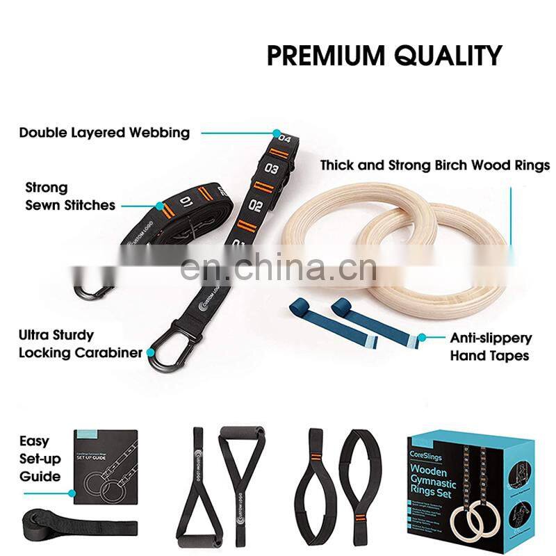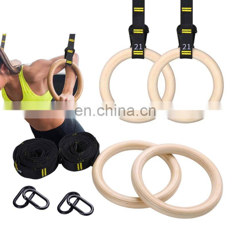 2021 Outdoor Exercises Gym Sale Carabiners Fitness Workout Mount Gymnastic Rings Wood