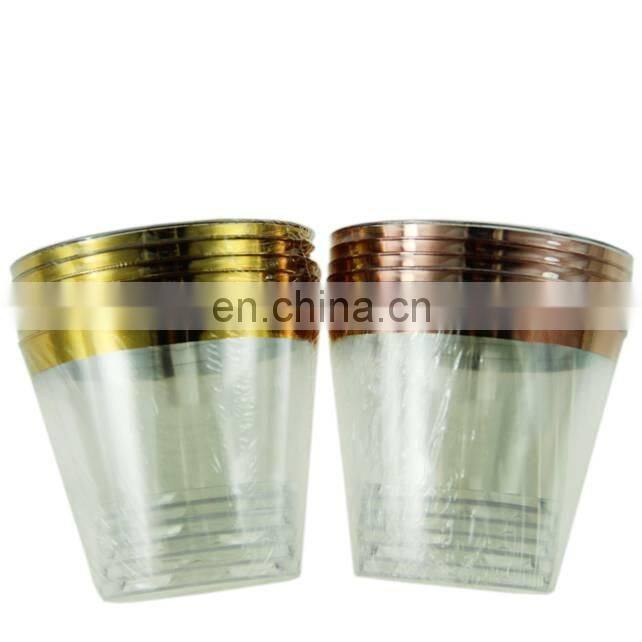 Disposable 9 Oz Gold Rim Plastic Cups For Wedding Decoration Party