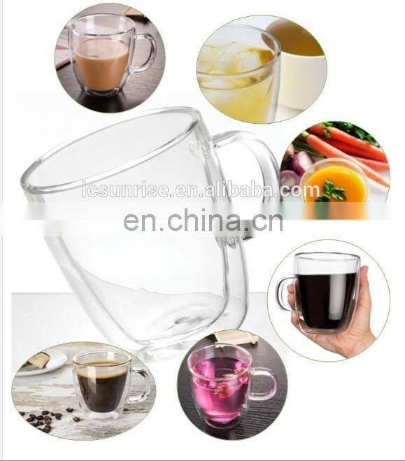 Double Walled Heatproof Clear Big Glass Tea Cup With Handle
