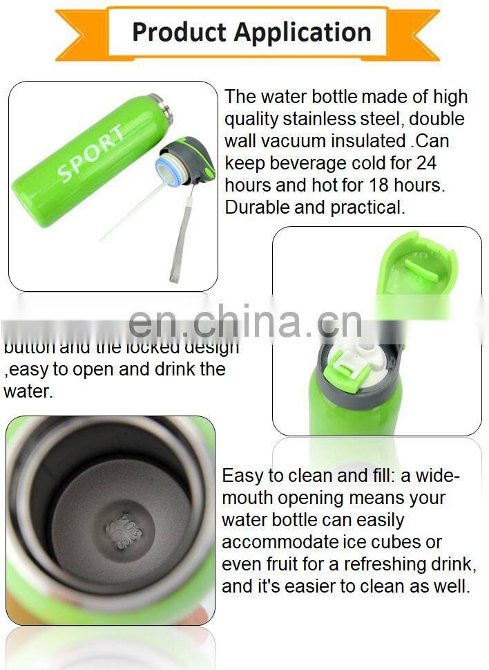 The water bottle made of high quality stainless steel, double wall vacuum insulated .Can keep beverage cold for 24 hours and hot for 18 hours. Durable and practical.