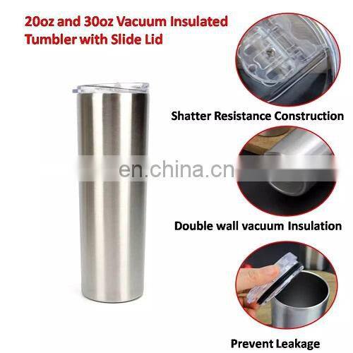 New Arrival Double Wall 20 oz And 30 oz Stainless Steel Tumbler With Slide Lid Vacuum Insulated Tumbler