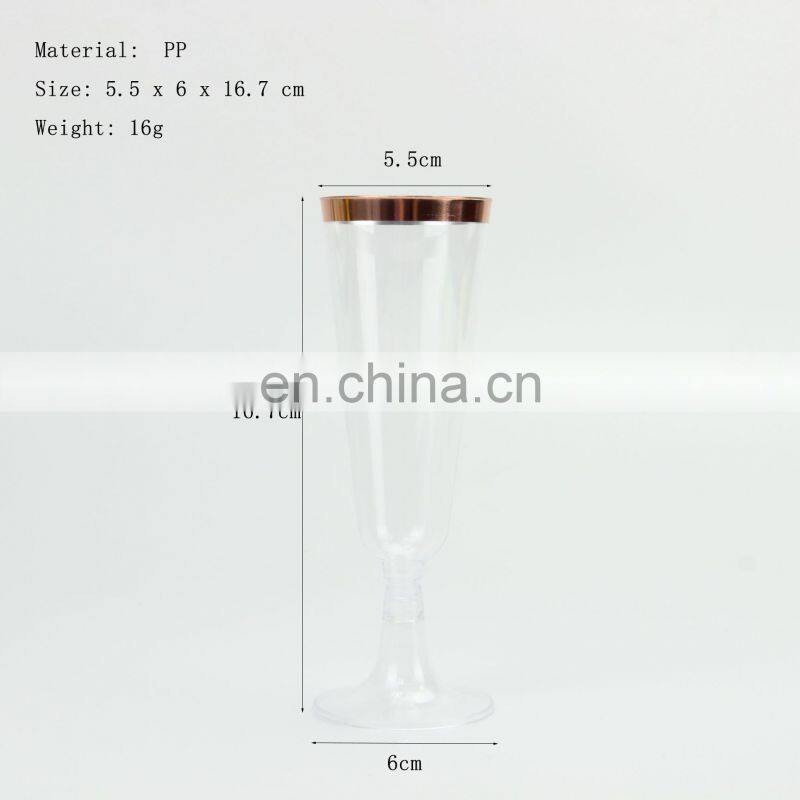 Hot Selling 6.5 Oz Bachelorette Party Champagne Rose Gold Rim Disposable Custom Plastic Champagne Flutes