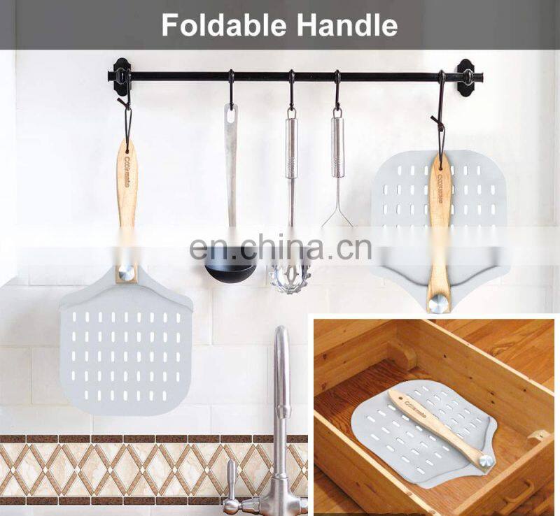 Private Label Newest Shovel Perforated Non Stick Metal Foldable Aluminium Pizza Peel