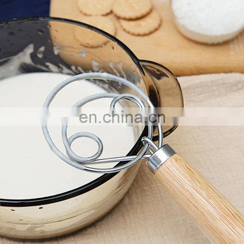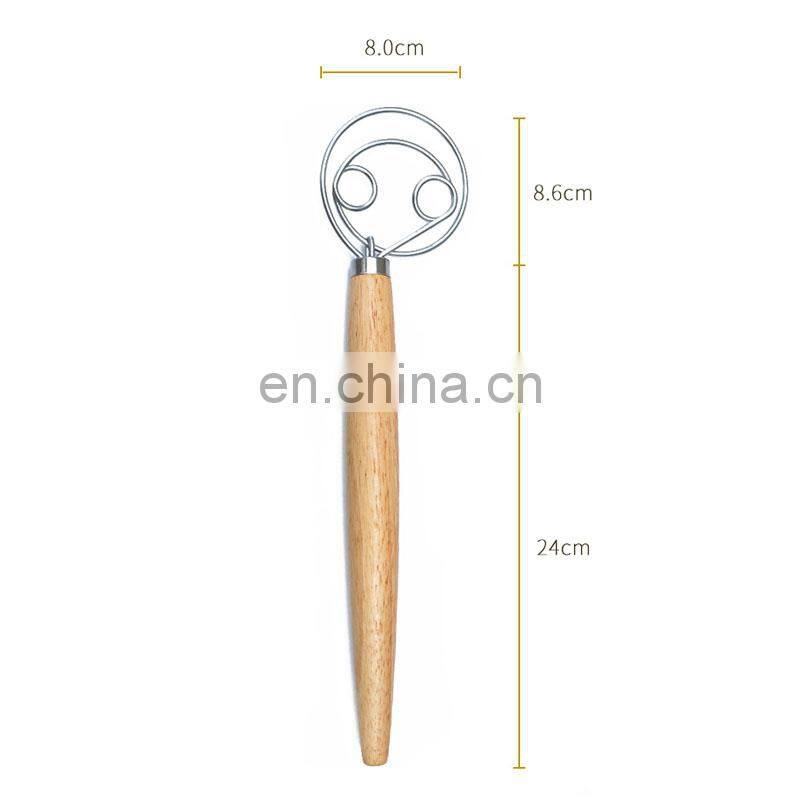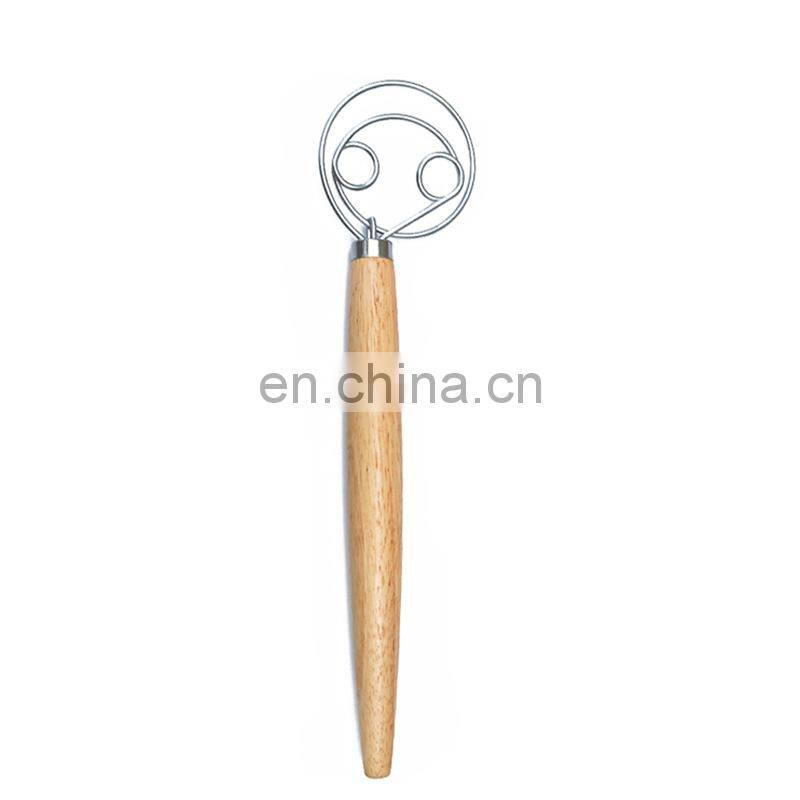 Kitchen Walnut Birch Beech Wooden Handle Bread Stainless Steel Danish Dough Whisk
