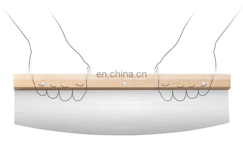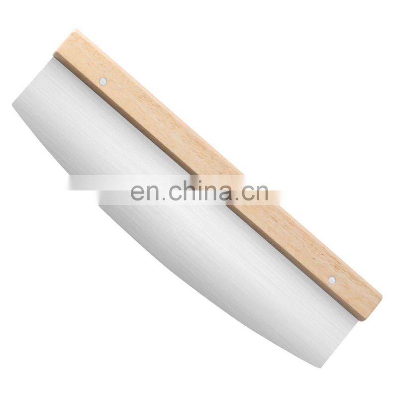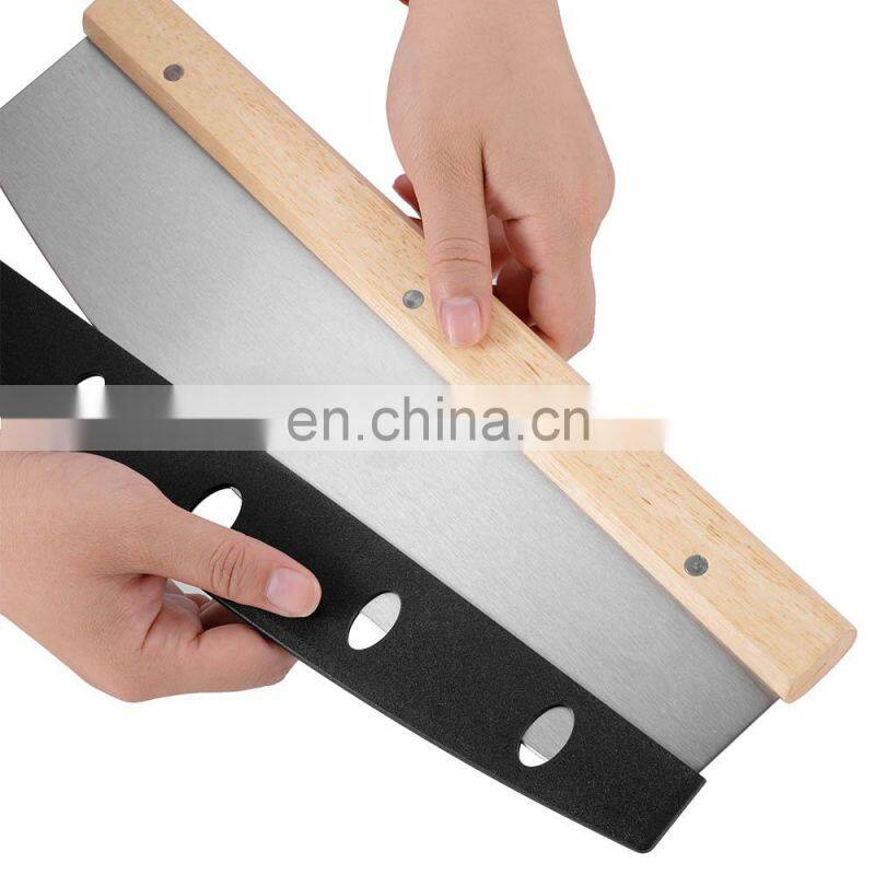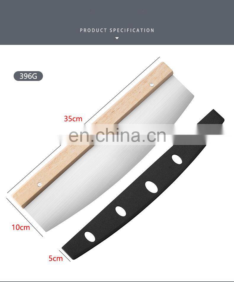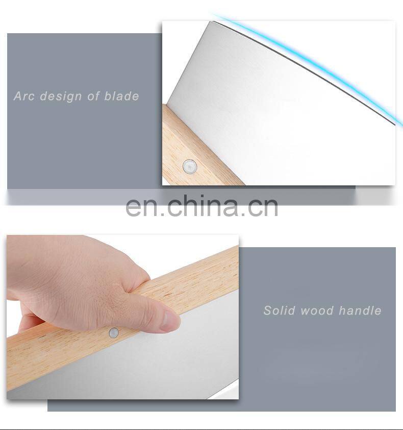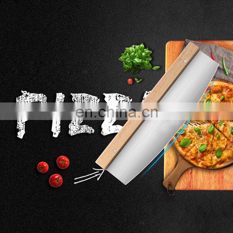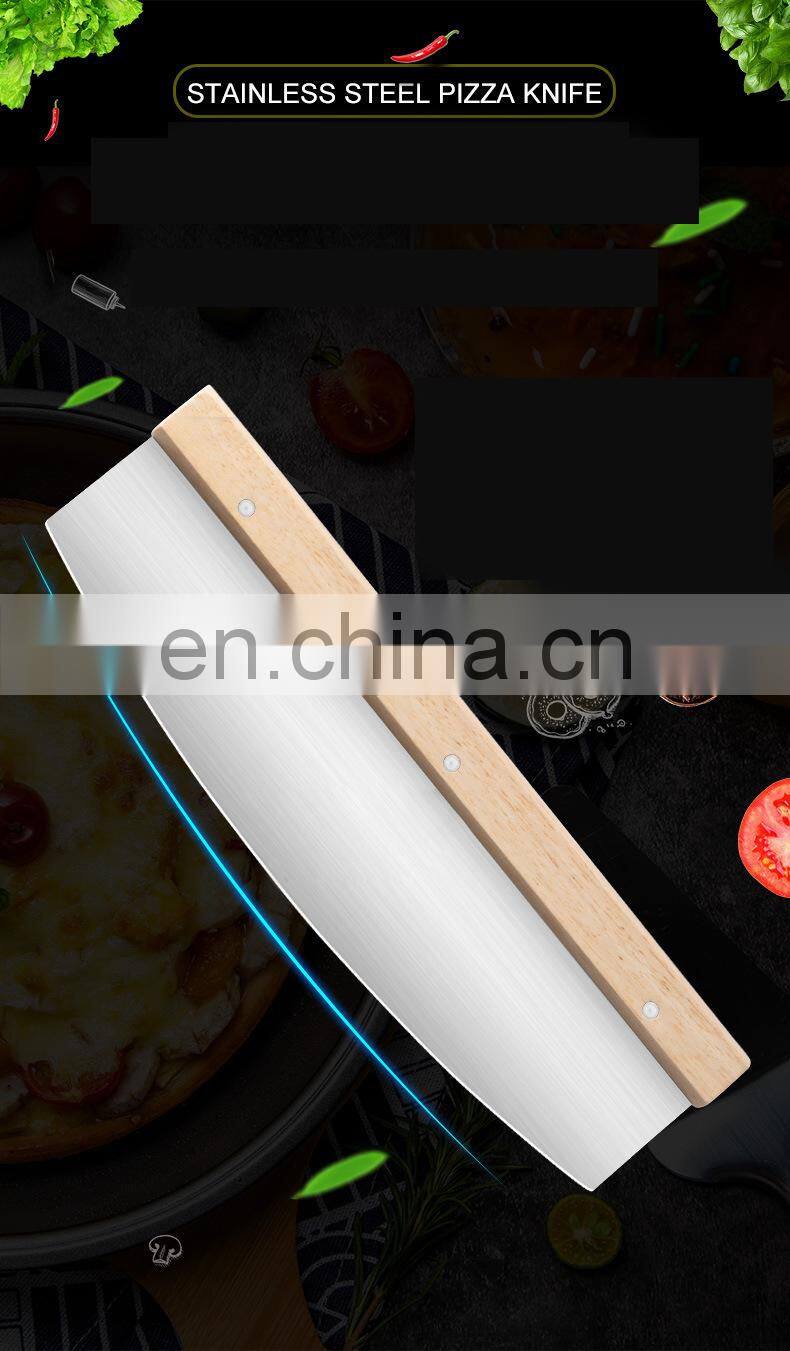 Advertising Custom Logo Blade Wood Handle Knife Slicer Stainless Steel Pizza Cutter Rocker