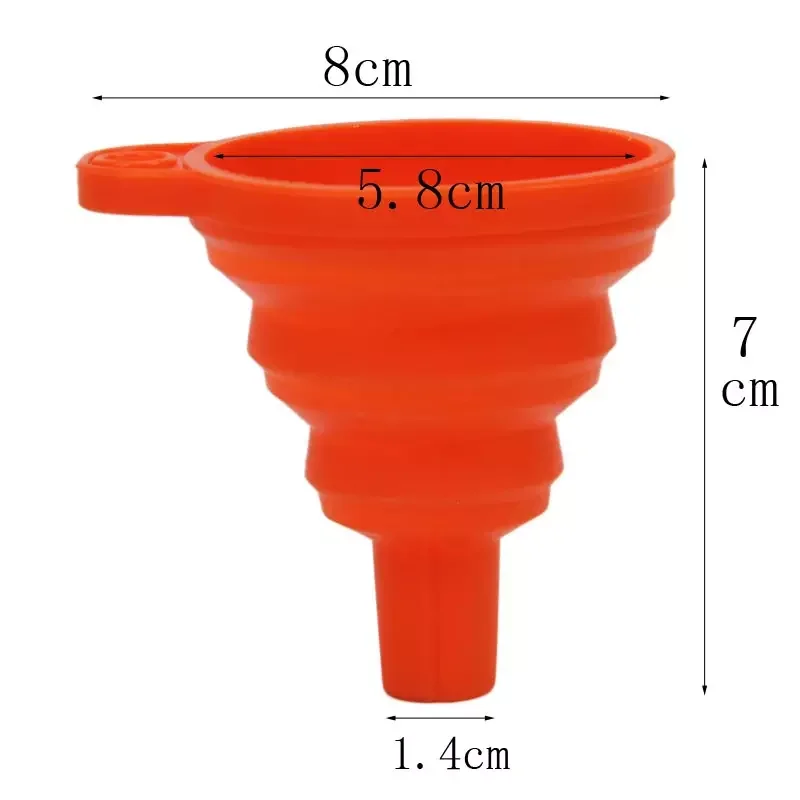2. ASSORTED SIZES COLORS: in different colors, Red, orange, blue, green. Silicone collapsible funnel.