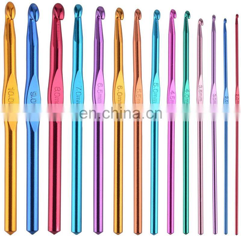14 Pcs Set Mult Color Knitting Needles Aluminum Crochet Hooks for Craft Yarn 2-10mm