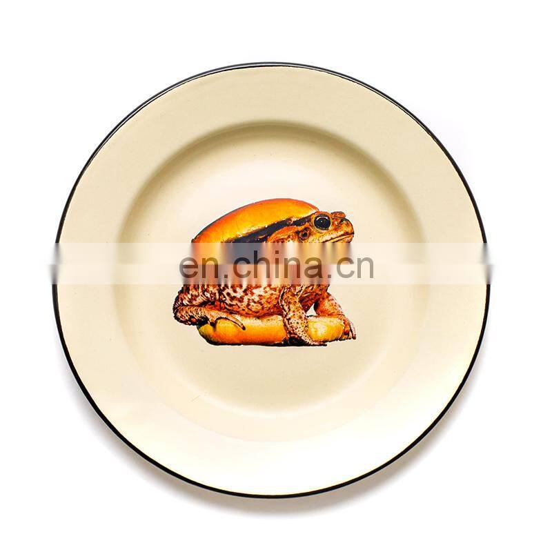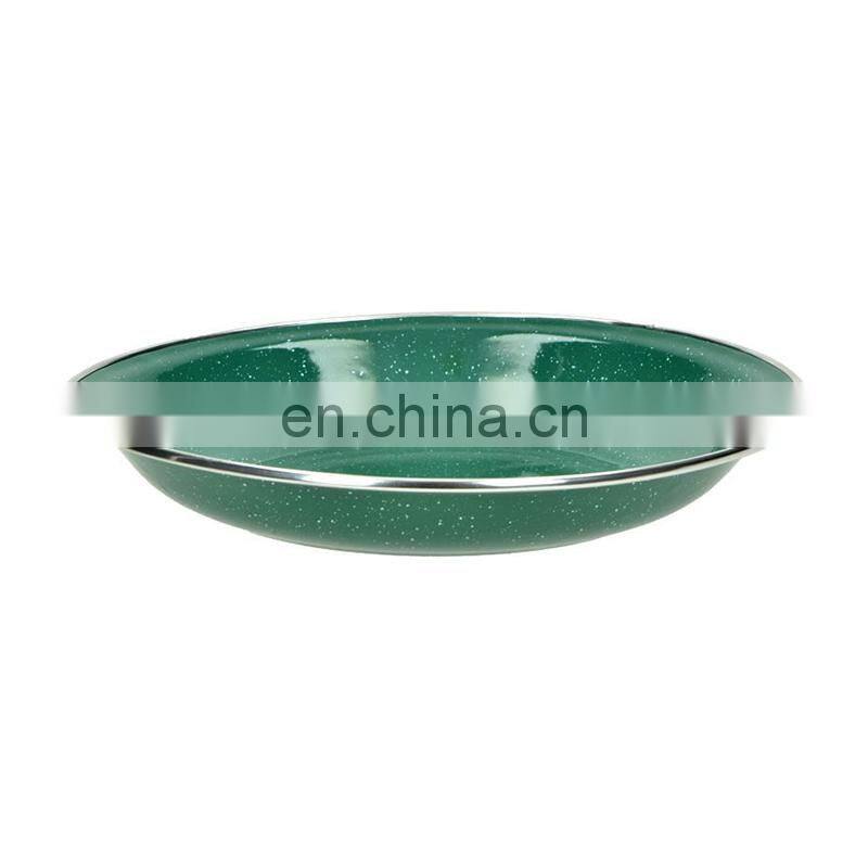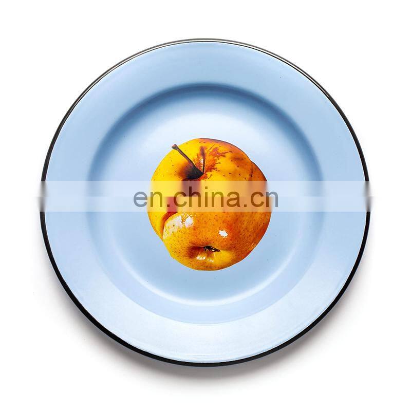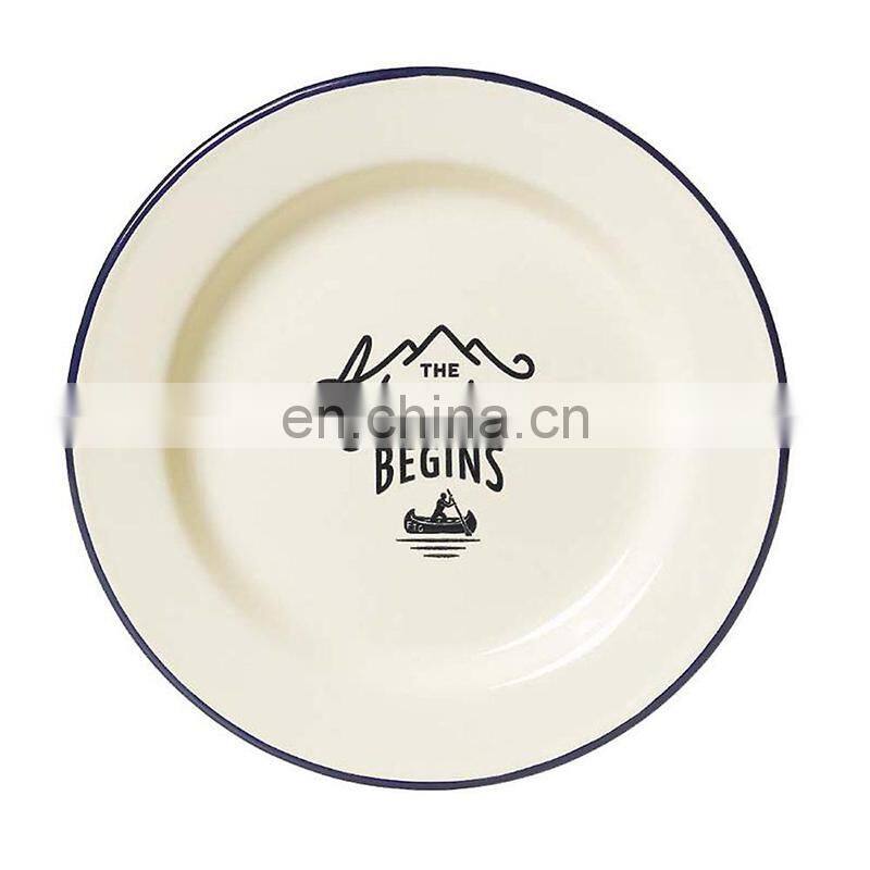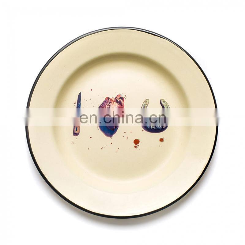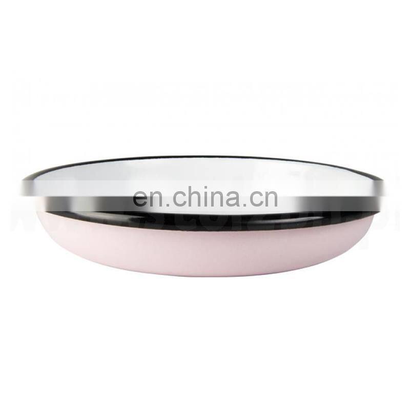 Customized White Flower Logo Printing Vintage Round Metal Steel Serving Soap Enamel Oven Pizza Dish