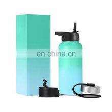Sport Bottle With New Wide Handle Straw Lid Wide Mouth Vacuum Insulated 18/8 Stainless Steel Sports Water Bottle 32oz Gradient
