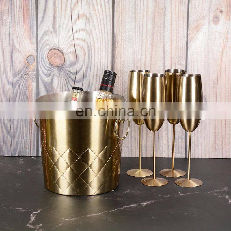 Promotional Champagne Metal Vintage Style Luxury Customized Color Stainless Steel Double Wall Ice Bucket
